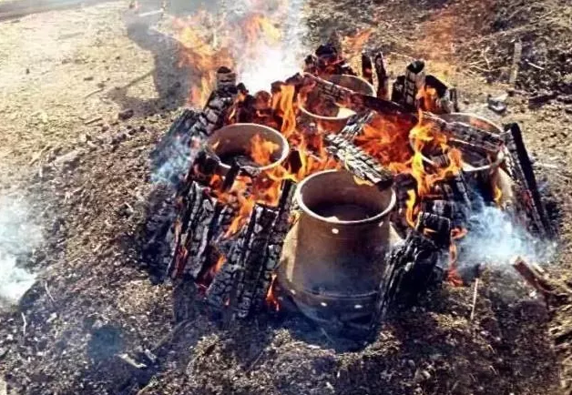 黑陶的烧制方式也很原始,不搭建窑炉,而是在天晴时于露天空地上生起一堆篝火,在烧制过程中,还需要不断地在柴堆周围添加苹果枝、栗树枝以助燃。