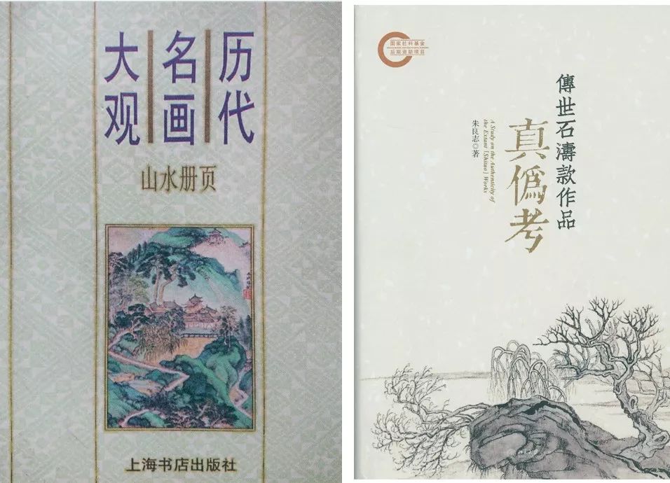 右:朱良志《传世石涛款作品真伪考》(称“这是一册充满野逸萧散趣味的山水系列”)
