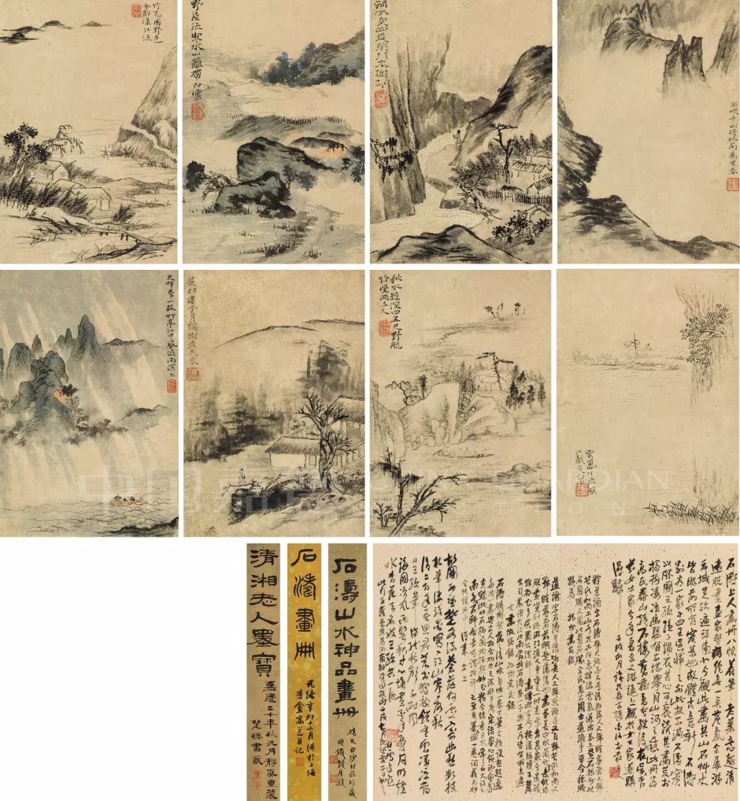 3.钱瘦铁(1897-1967):石涛山水神品画册。桥氏白沙村庄珍藏。瘦铁钱厓题。钤印:钱厓之印、瘦铁大利