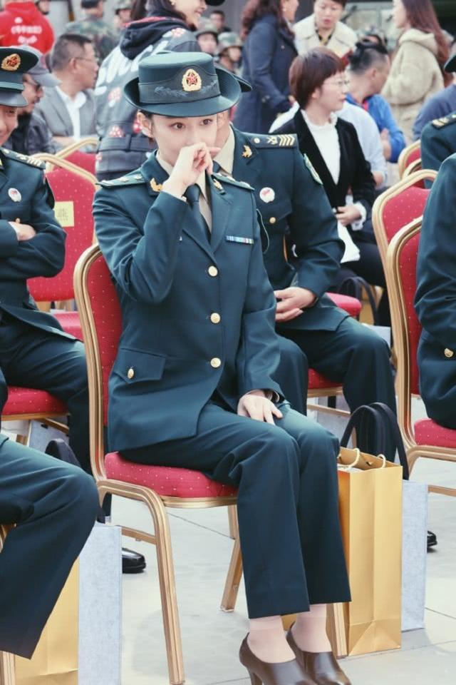 发布会全程张馨予都将军人该有的纪律完美展现,捂嘴甜笑别有一番韵味。