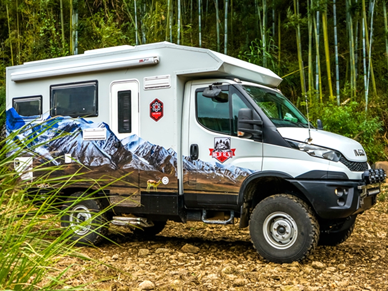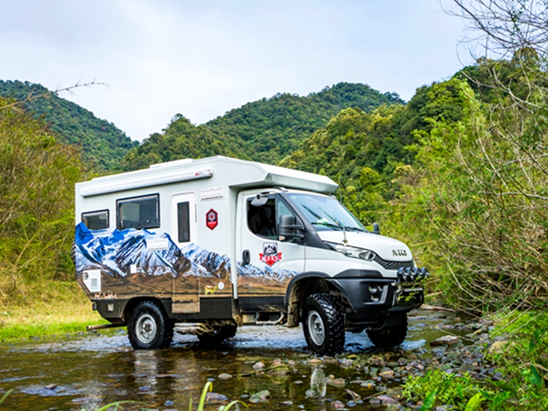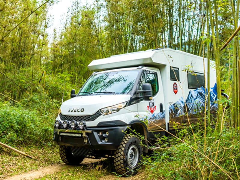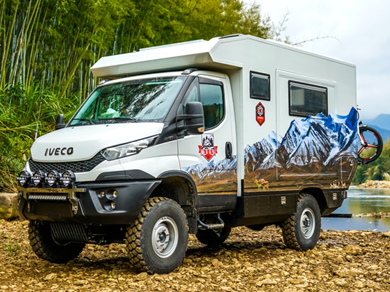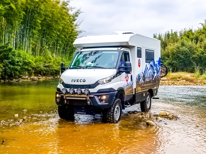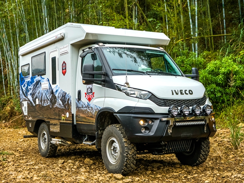 外观、内部都能称心如意,咱再来说说这款C型越野房车的配置,毕竟车辆配置的好坏才决定了我们能否选择,能否从它身上获得更好的体验。旅美速腾漫步者采用的是意大利全进口IVECO NEW Daily 4X4越野底盘,拥有前后非独立悬架和硬轴4轮驱动,承载能力达5.5吨。配备4×4全时驱动形式,前、中、后三把越野差速锁,2840.6 OD手动变速箱,6前进挡,1倒挡,和24个越野速比,简单来说就是承载性能好,驾驶灵活度强,驱动性好,通过性和舒适性也很棒。