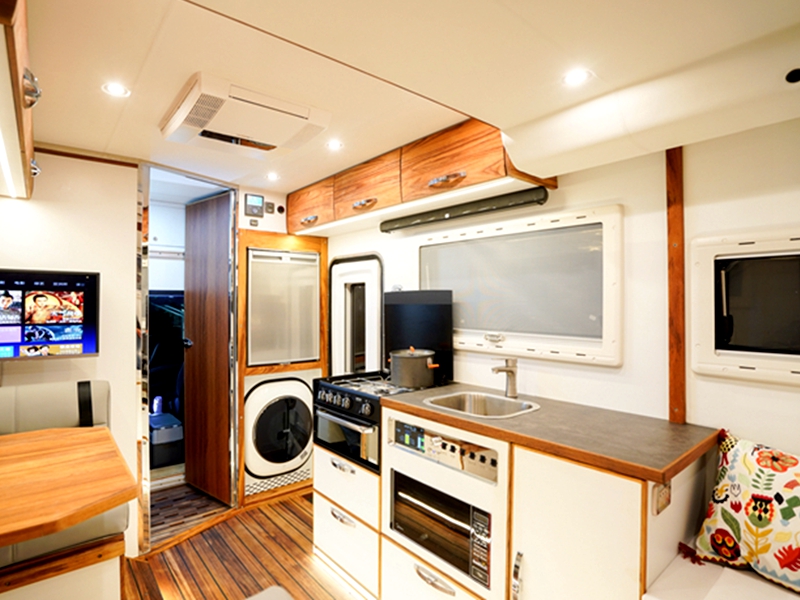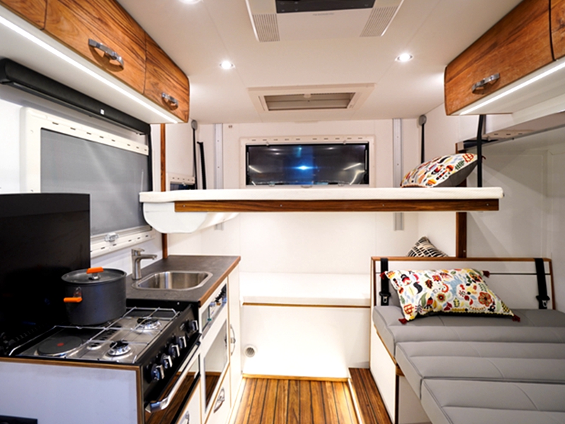 旅美速腾漫步者的内部空间超大,结构布局也极为合理,轻量化的车身设计,加上侧拓式的结构,能拓展出一个超大的会客厅,乘得下5个人旅居生活!一家五口,有爸妈有孩子,其乐融融穿梭在各个城市之间,体验不同的人文风情,这种感觉真是棒。最重要的是,其厨房区域、卫浴区域、卧室等区域一应俱全,吃住在车上,吃的方便放心,住的舒心安心,这样的旅行多来几次正好满足了大家的心愿。