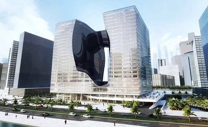 而在扎哈作品中,运用类似中空设计的还有于去年开幕的澳门摩珀斯Morpheus酒店。不同的是,摩珀斯建筑中间有三个中空部分,采用了外骨骼结构。
