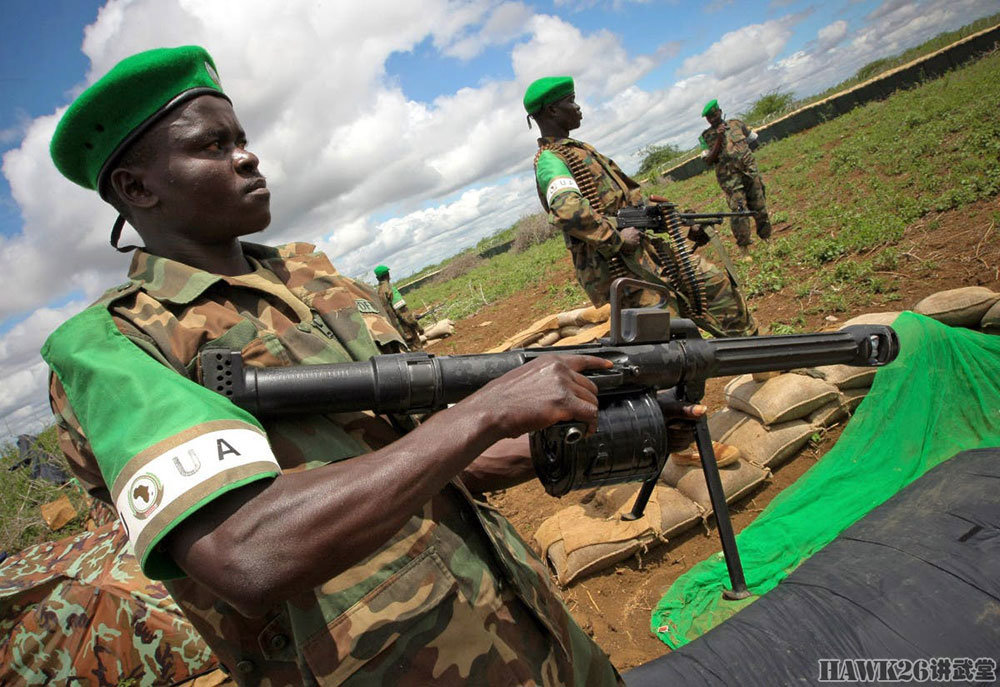 中国上世纪80年代后期研制的QLZ-87自动榴弹发射器,在设计和功能上与QLU-11 / LG5非常相似。这种武器发射35×32mm榴弹,士兵可以抵肩射击,或者安装到三脚架上射击。QLZ-87已经取得了一定的外销成绩,主要出口到非洲国家。图为驻索马里非洲联盟特派团(AMISOM)的一名乌干达士兵手持QLZ-87榴弹发射器执行防御任务,拍摄日期为2012年。