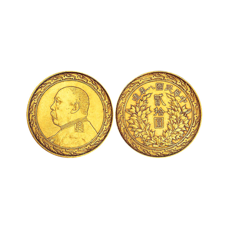 中国钱币拍卖榜第20名 中华民国八年造袁世凯像贰拾圆金币