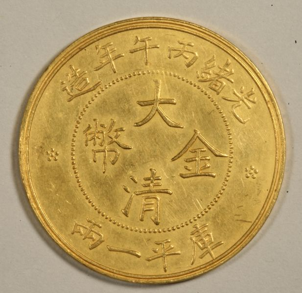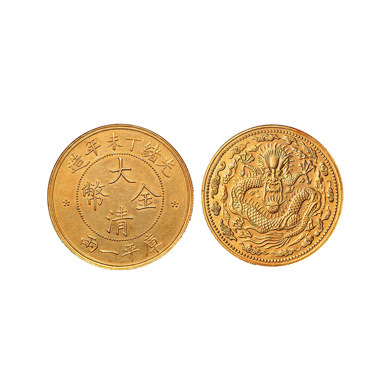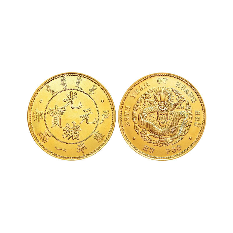 中国机制银币的币制单位问题,在其开制之初即已产生。在广东设局造币获得成功后,就有人主张中国龙银应以传统计重单位的「两」来结算,光绪二十五年(1899年)底京城拟筹备设立银圆局,当时军机处及户部致电各省询问主币龙银重量应重若干。随后,总局按照袁世凯指示进行一两银币的生产,并委托日本正金银行任办模具。「光绪元宝 户部 库平一两 金币」为机制原模后铸,但字体刻划却不失铁画银钩、浑然天成的感觉,而龙身以及龙麟更是刻划细腻且精美大气,是为藏家值得收藏的珍品之一。