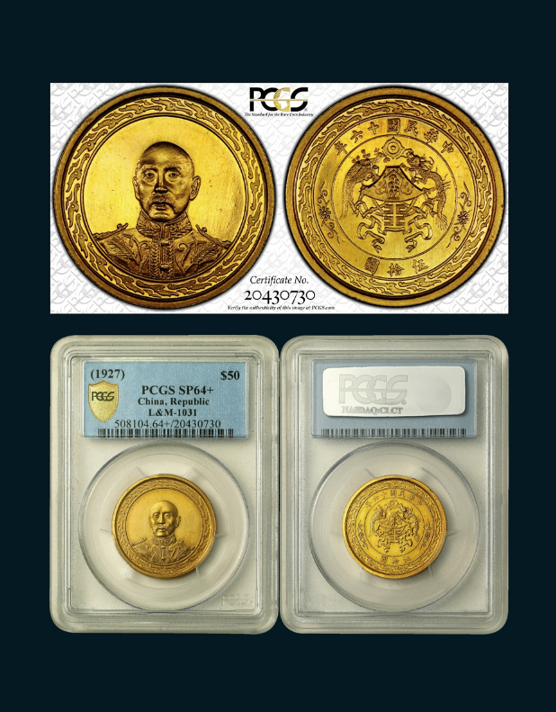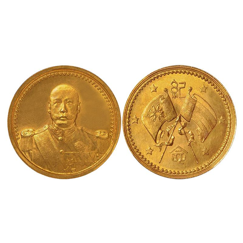 云南发行拥戴共和纪念当银币拾圆金币,因币上为云南都督唐继尧像,因此又成为“唐军长”金币。该币是清末民国唯一用於正式流通的金币,旗下无“1”版更是罕见。近未使用,极具历史价值。
