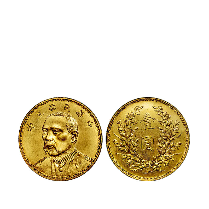 中国钱币拍卖榜第3名 中华民国三年袁世凯像“七分脸”壹圆金币样币