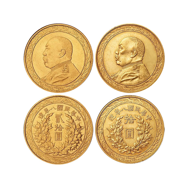 中国钱币拍卖榜第10名 袁世凯像中华民国八年造拾圆贰拾圆金币 (一组)