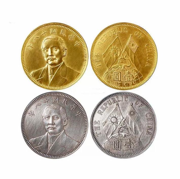 民国十八年(1929年),国民政府为筹发新国币,为纪念“国父”,决定采用孙中山先生的头像作为银元的图案。中央造币厂设计了一种正面以孙中山身穿西服、上端镌“中国民国十八年”字样;背面为地球双旗图案,上端镌英文“THE REPUIBLIC OF CHINA”(中华民国)字样, 地球上还有“壹圆”两字。