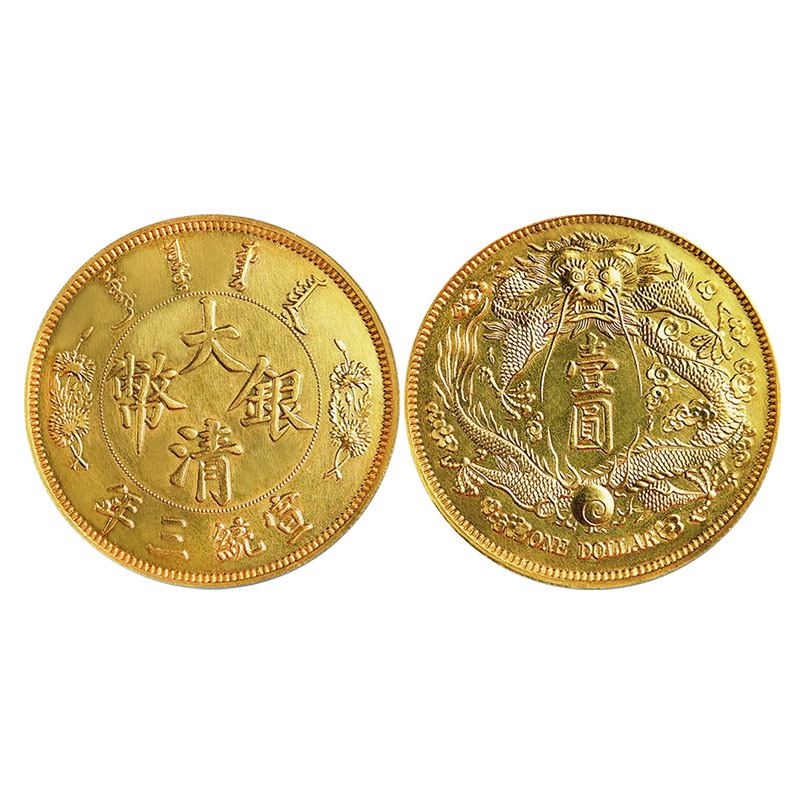 大清金币由于背面图案为一蟠龙,故俗称“龙洋”。因铸行量较小,又属贵金属币,愈显珍罕,市场价格居高不下,并仍具升值潜力,是收藏者难觅佳品。