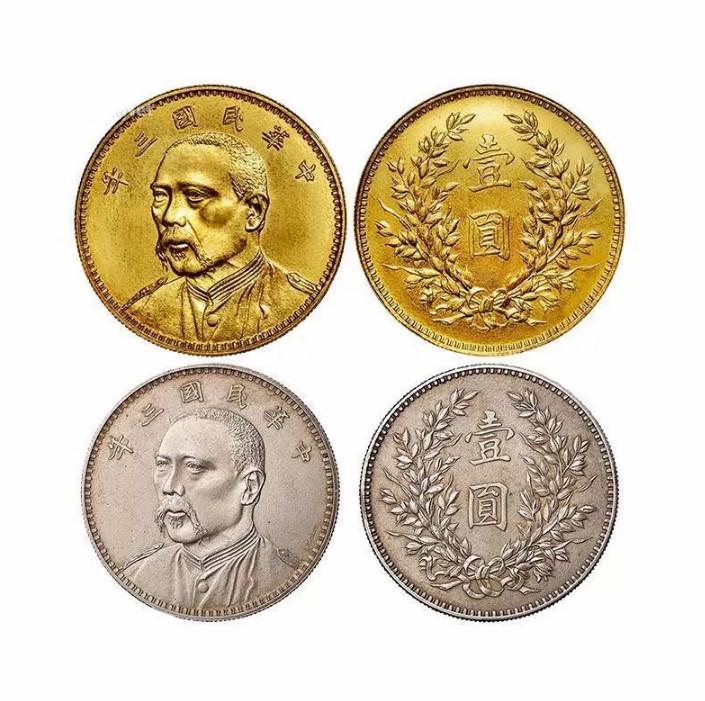 中华民国三年袁世凯像“七分脸”无签字版壹圆罕见精制金质样币,民国三年二月《国币条例》公布,天津造币总厂即进行筹划,币模由意大利籍总雕刻师乔治(L.Giorgi)操刀。乔治之前未见过袁世凯本人,是以照片为样雕刻,乔治自照片上以为袁“苍老虚弱”,“七分面”版完成后亲自携带样币赴北京晋见袁世凯,呈览时却发现所镂肖像与袁本人神采差异甚大,无法显示袁的强人形象而未受赞赏。乔治乃要求重刻并获核隼,袁世凯并坐下为其摆好姿态,重新雕刻后之肖像即通用之侧面像(俗称“袁大头”)。七分面有签名版及无签名版,存世数量甚少,金质样币更为凤毛麟角。