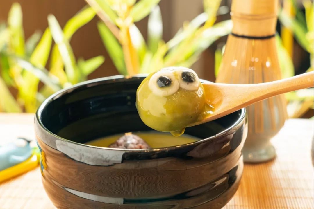 Q萌的小团子泡在抹茶汤里,像是在悠闲的泡汤,吃起来是糯米团子的味道,糯糯的~
