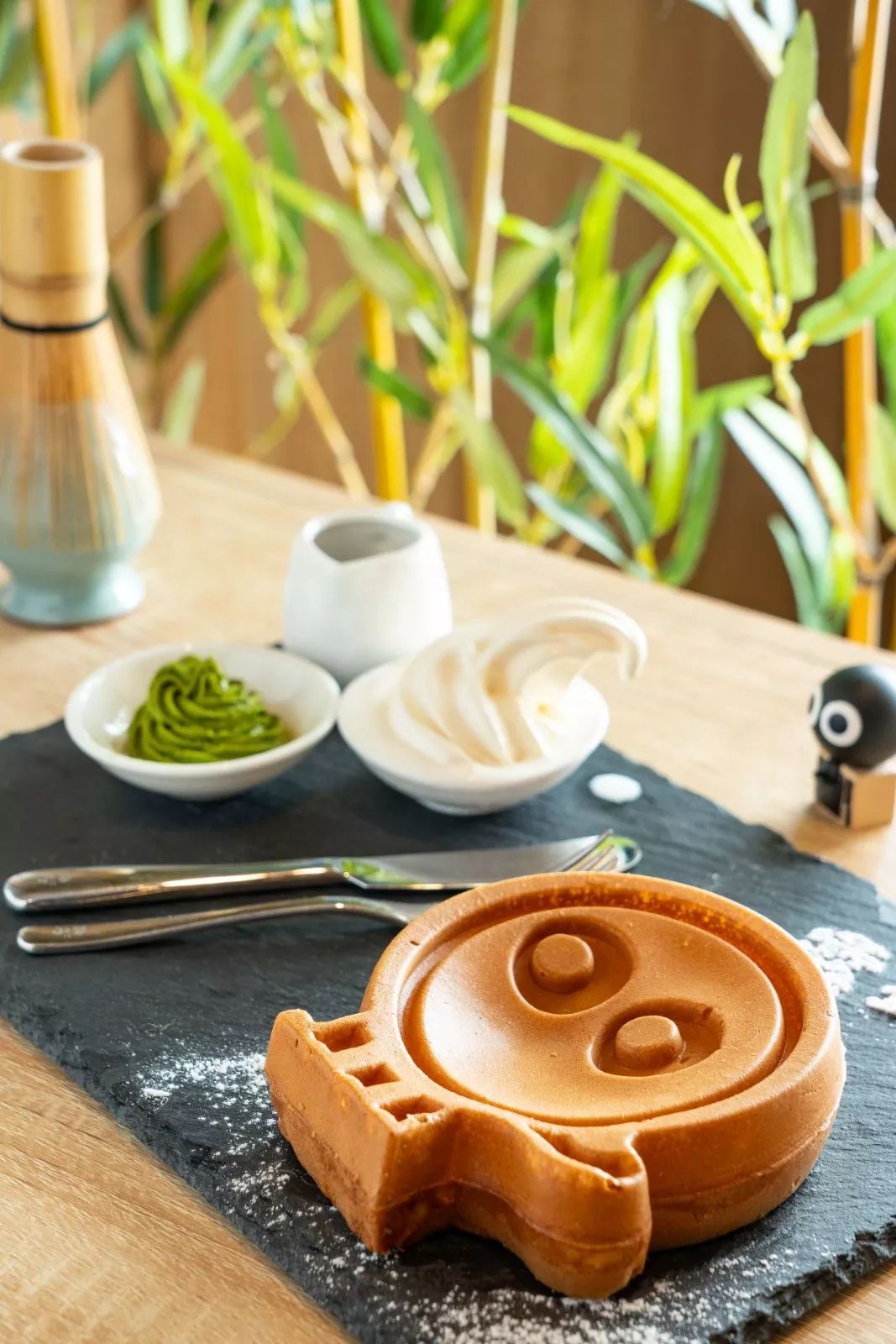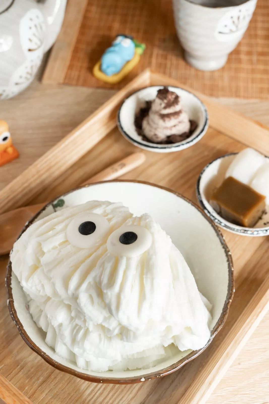 萌萌的小眼睛被做成松饼,配上了霜淇淋、抹茶慕斯和巧克力酱,可以根据自己的喜爱的口味搭配。