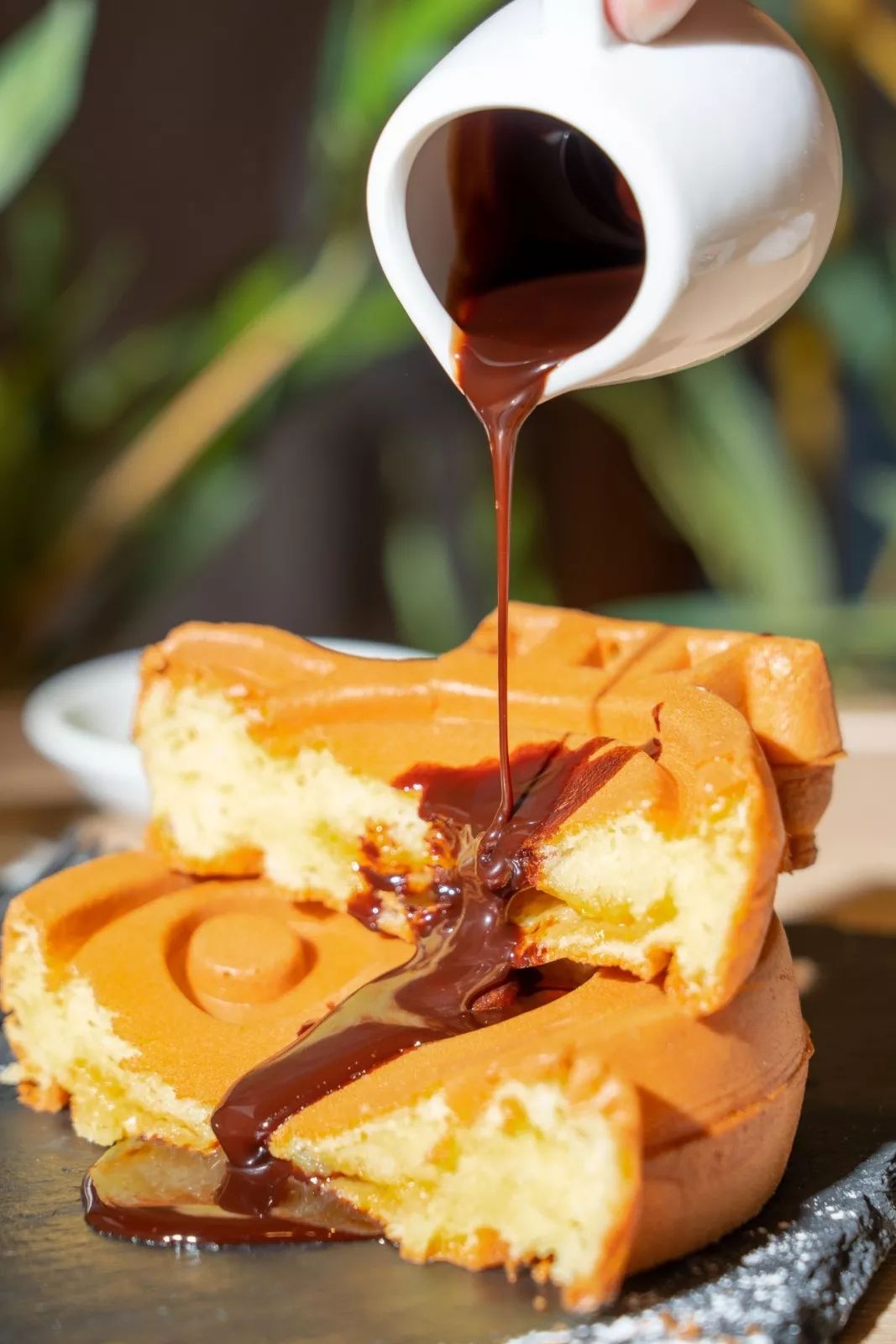 建议一定要淋上搭配的巧克力酱,香浓的巧克力和松松软软的饼底,完全激发味蕾深处的愉悦感!