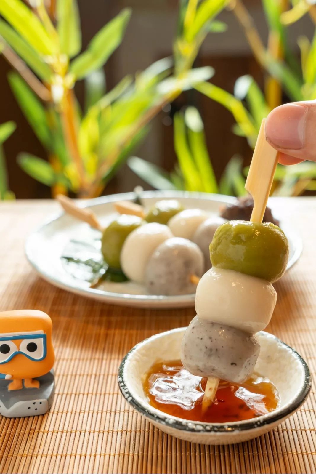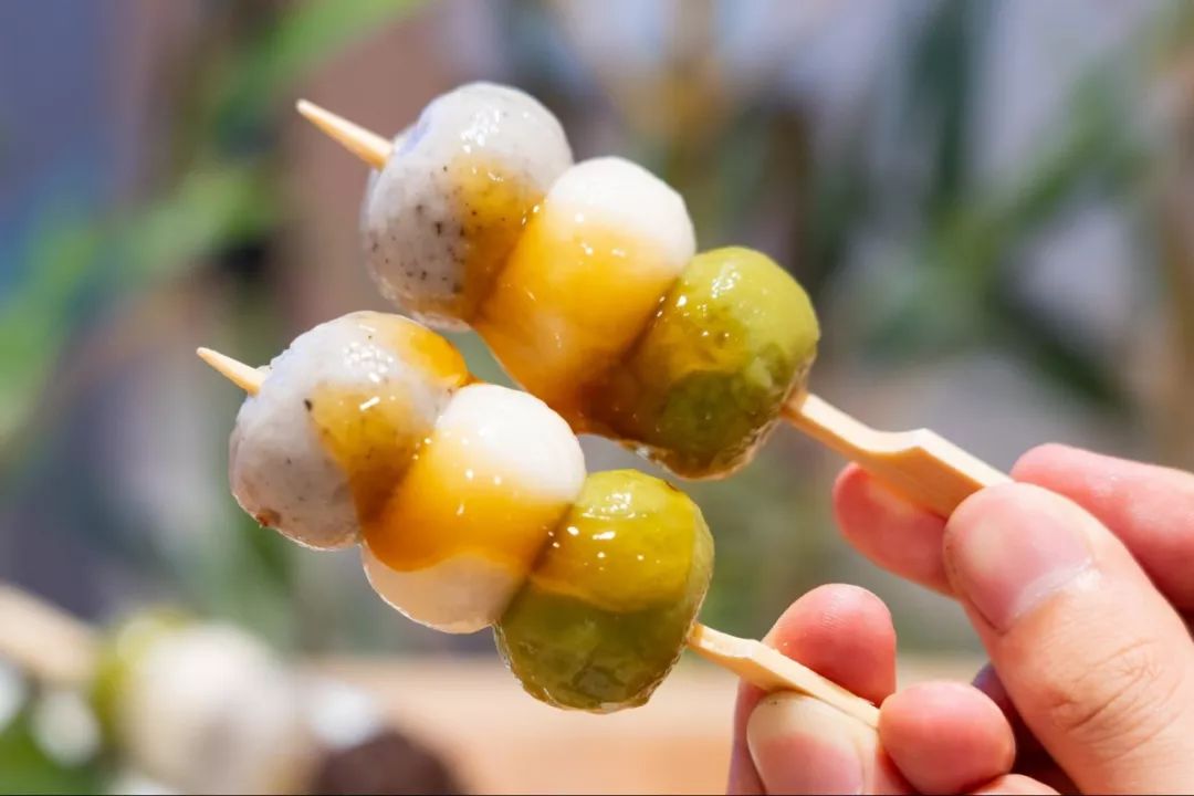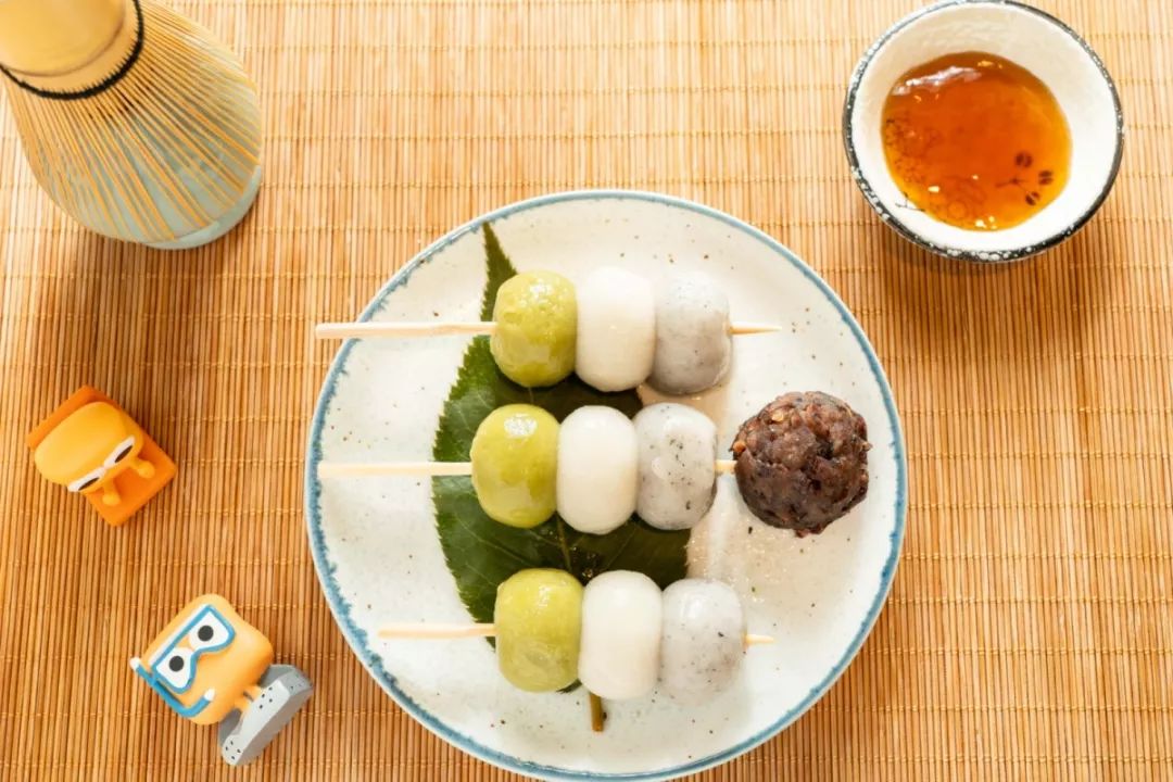 日式的三色团子是日本特色的传统美食,团子里面没有馅料,主要是靠淋上去的酱汁来调味。