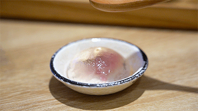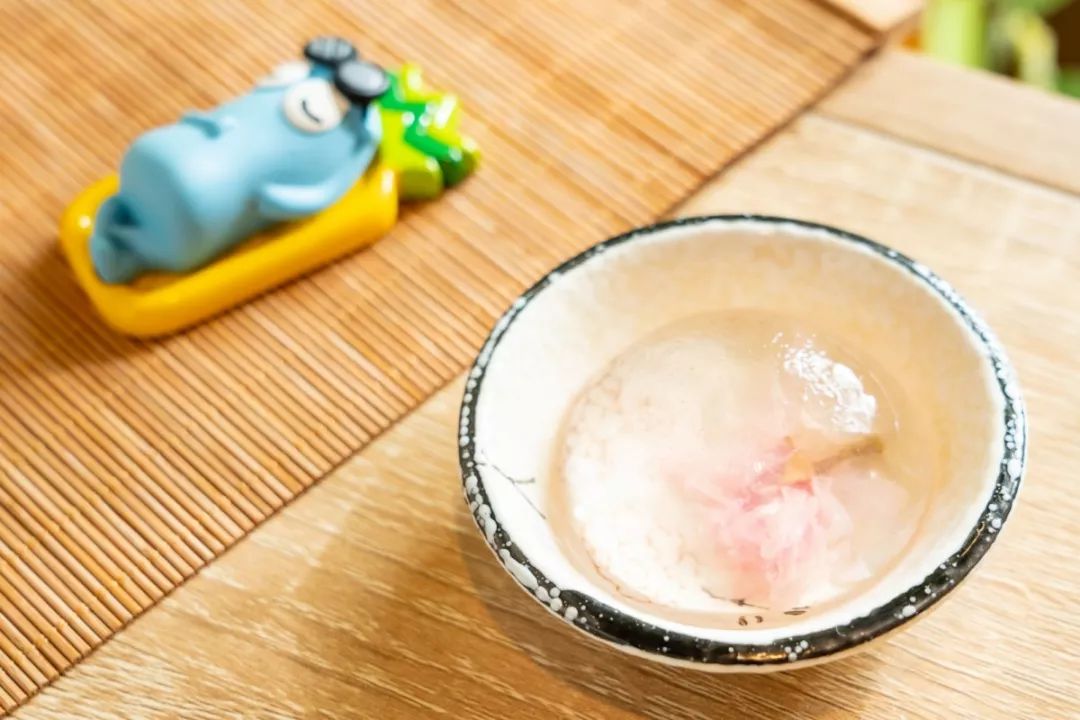 搭配的樱花冻,也叫水信玄饼,是日本的一种传统小吃,晶莹剔透的精致不忍心下口,敲一下QQ弹弹的~