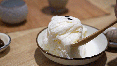 怪物冰柔软蓬松,一点冰渣都没有,犹如是天上的云一般~