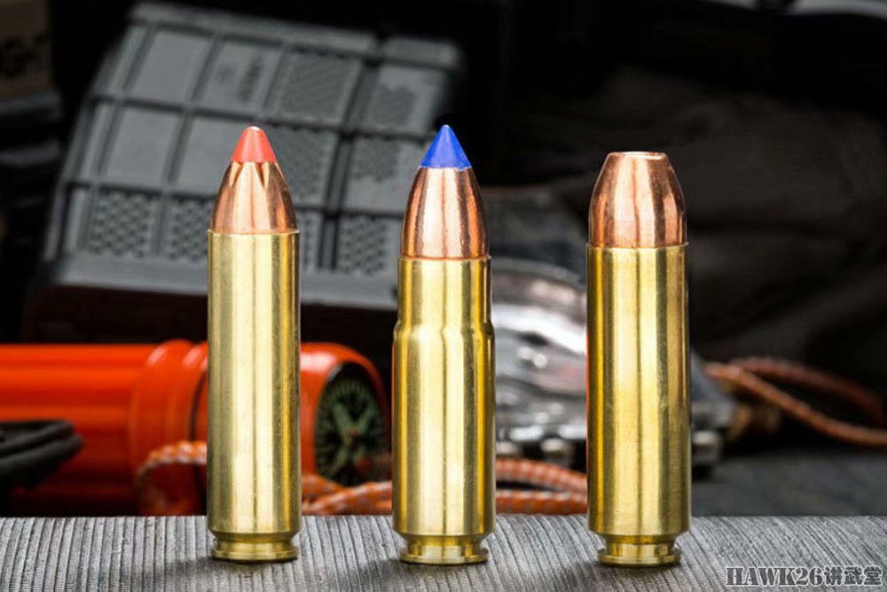 美国很多地区野猪成灾,需要猎人进行猎杀来控制其种群数量。然而猎杀这样危险的猎物,普通弹药无法达到理想的杀伤效果。这是因为野猪经常发生争斗,其肩部有厚实的疤痕组织,可以防御对方长达450mm獠牙的穿刺。这样的毛皮显然就是一件天然的防弹衣,完全能够阻挡小口径弹丸的杀伤。因此“野猪猎手”选择发射(从左至右).450 Bushmaster、.458 SOCOM和.50 Beowulf的AR步枪作为武器,从而达到一击必杀的效果。