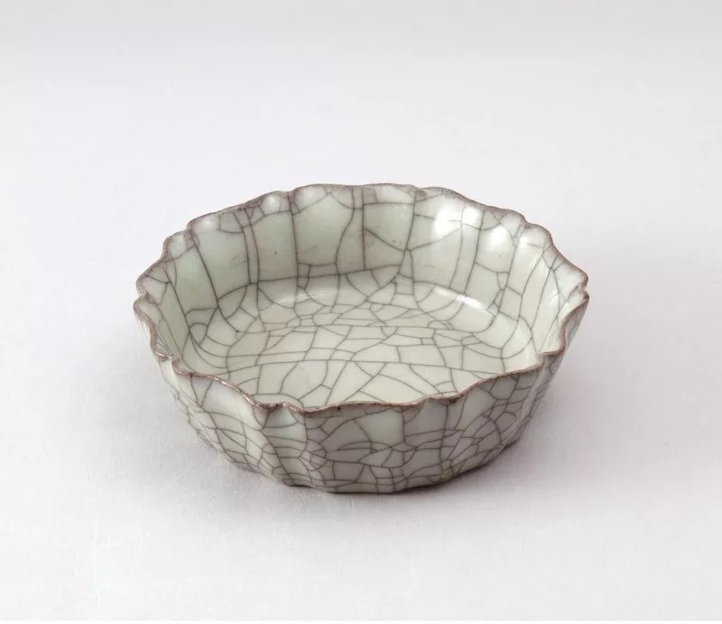 宋人取其形入瓷,得葵瓣盘、葵口碗、葵瓣洗等器。官窑、哥窑等时有烧制葵瓣洗之形,或开六棱、八棱、十棱,多者甚至有十二棱。已知宋器十棱洗散见于北京故宫博物院、台北故宫博物院、牛津大学艾希莫林博物馆、克里夫兰美术馆等处,拍卖市场上偶有得见。器底均施满釉,裹足支钉烧造,秀雅考究;直径以12厘米左右为多,偶有逾20厘米者。盈手而握,尤若蜀葵半绽未放,凝润温雅。