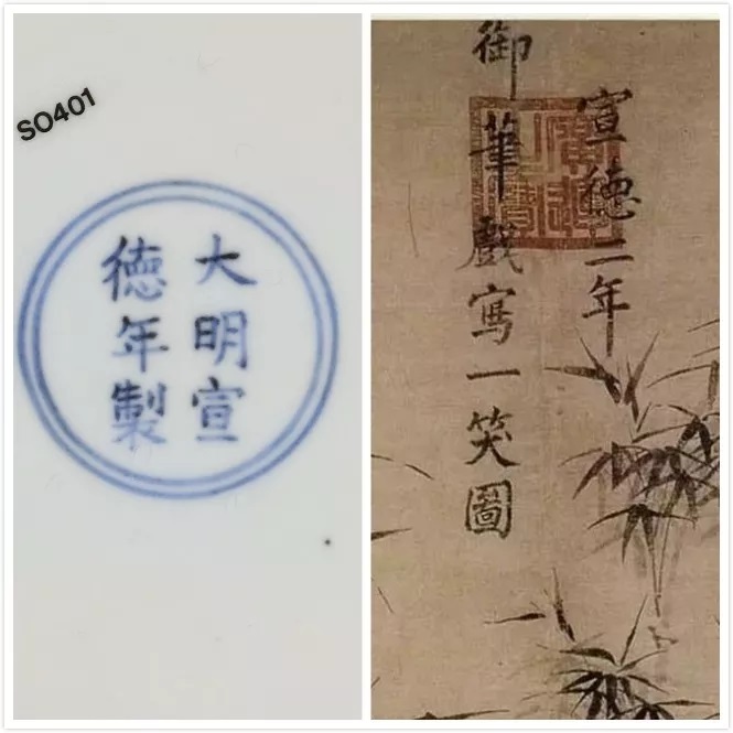 将《一笑图》画中宣德元年宣宗御题,与本件十棱洗的年款详加对比,便会发现此写款的风格脱胎于宣宗笔意。