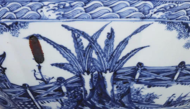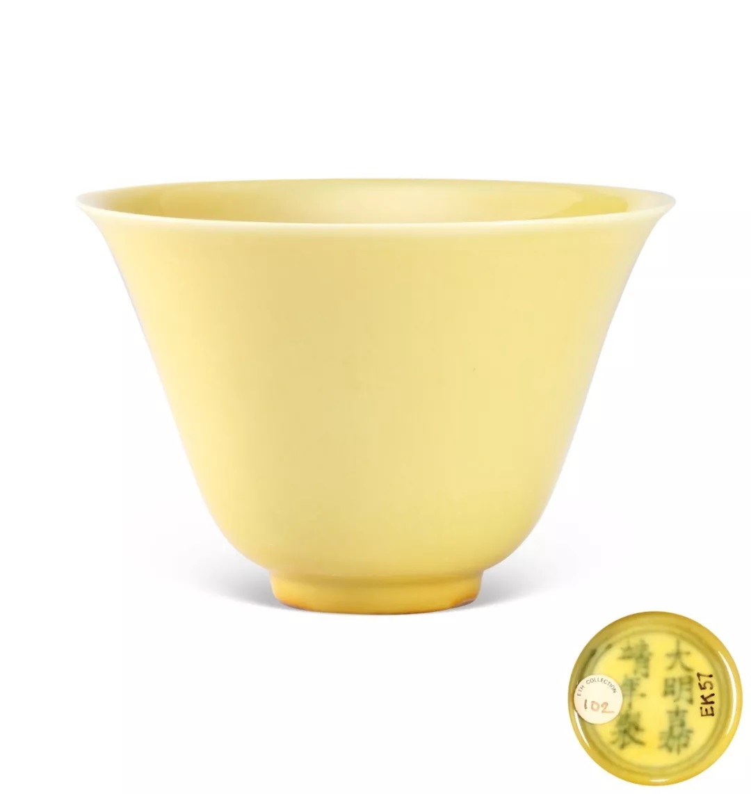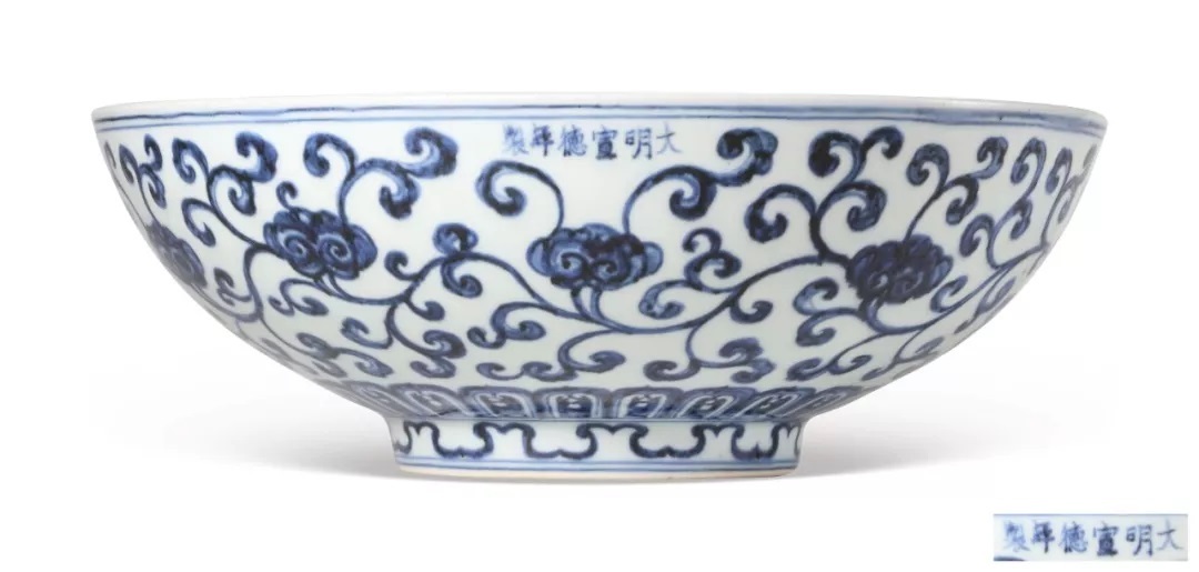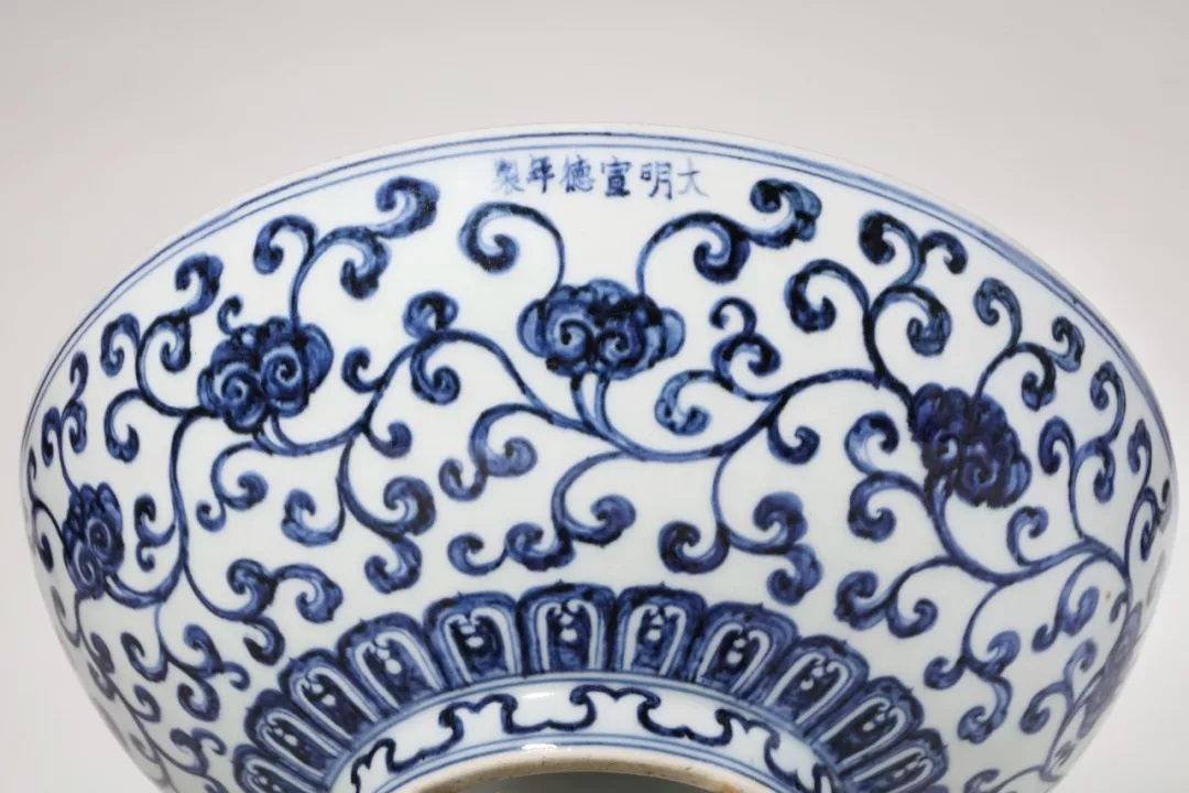 明代宣德皇帝朱瞻基治国有方,“吏称其职,政得其平,纲纪修明,仓庾充羡,闾阎乐业。岁不能灾。盖明兴至是历年六十,民气渐舒,蒸然有治平之象矣”,史称“仁宣之治”。他还深谙艺术,在诗、书、画及游艺等方面都具有很高造诣,以致彼时雕漆、范金、织绣、制墨、埏埴等诸类宫廷工艺品皆成就斐然。这一时期的瓷器烧造,“以诸匠之精艺者为之”,且有品秩较高的内官赴厂监造,成品亦经过严格筛选,次品废品皆被“分类摧毁,单独埋藏”,可见宣宗对其颇为重视,御制瓷器自是品格超群。