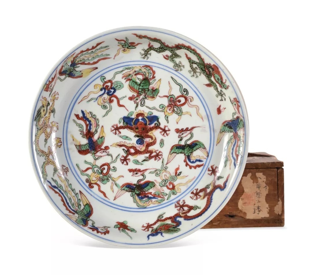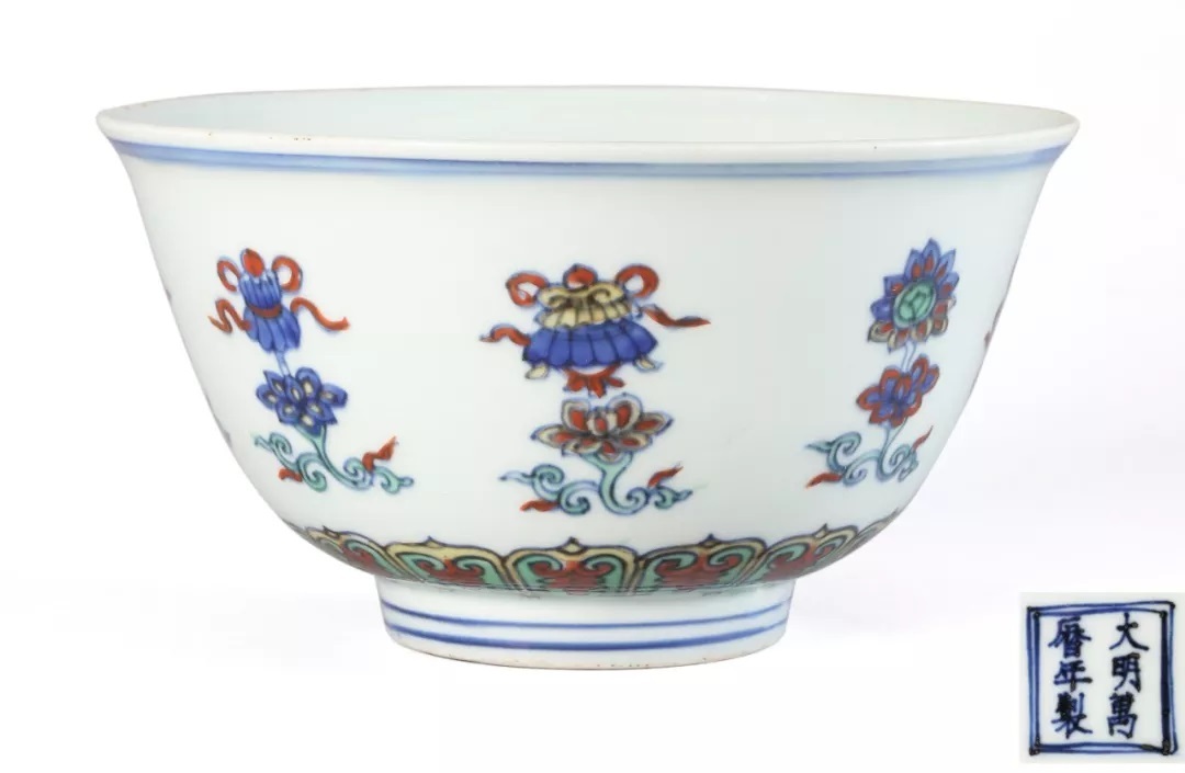 且此一时期,不仅将烧造的残次品打碎填埋,还将大量完好的贡余品销毁处理,故而成化御窑存世者皆为稀世之罕有品,以至于在明代晚期即已为世所珍。成书于万历年间的《万历野获编》既有:“城隍庙开市在贯城以西,每月亦三日,陈设甚多……至于窑器最贵成化,次则宣德。杯尽之属,初不过数金,余儿时尚不知珍重,顷来京师则成窑酒杯每对至博银百金,予为吐舌不能下”;又载“本朝瓷器,用白地青花间装五色,为古今之冠。如宣窑品最贵,近日又贵成窑,出宣窑之上。”