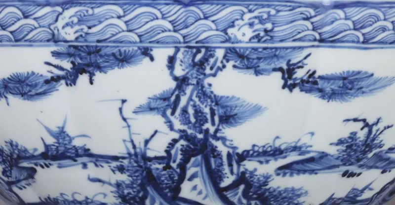 审美品味极佳的雍正皇帝对十棱洗尤为偏爱。大英博物馆藏雍正时期《博古图》精心绘制了二百逾件清宫珍藏,其中便有永宣时期的凤纹十棱洗一件,以精巧木座相承,雅然素秀。故宫博物院藏一清雍正青花云龙纹葵花式洗,虽为八棱,但外壁亦绘无边饰团龙纹,底书宣德年款,当照宣德模本而制,可见其珍视有加。