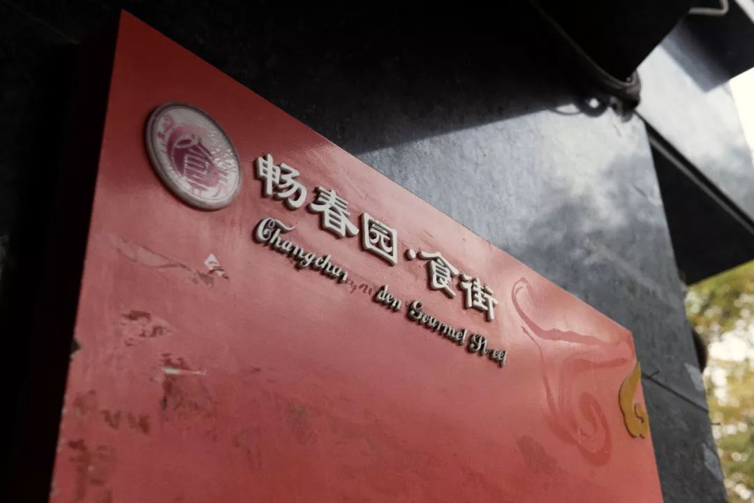 畅春园食街的招牌,部分字母已经剥落