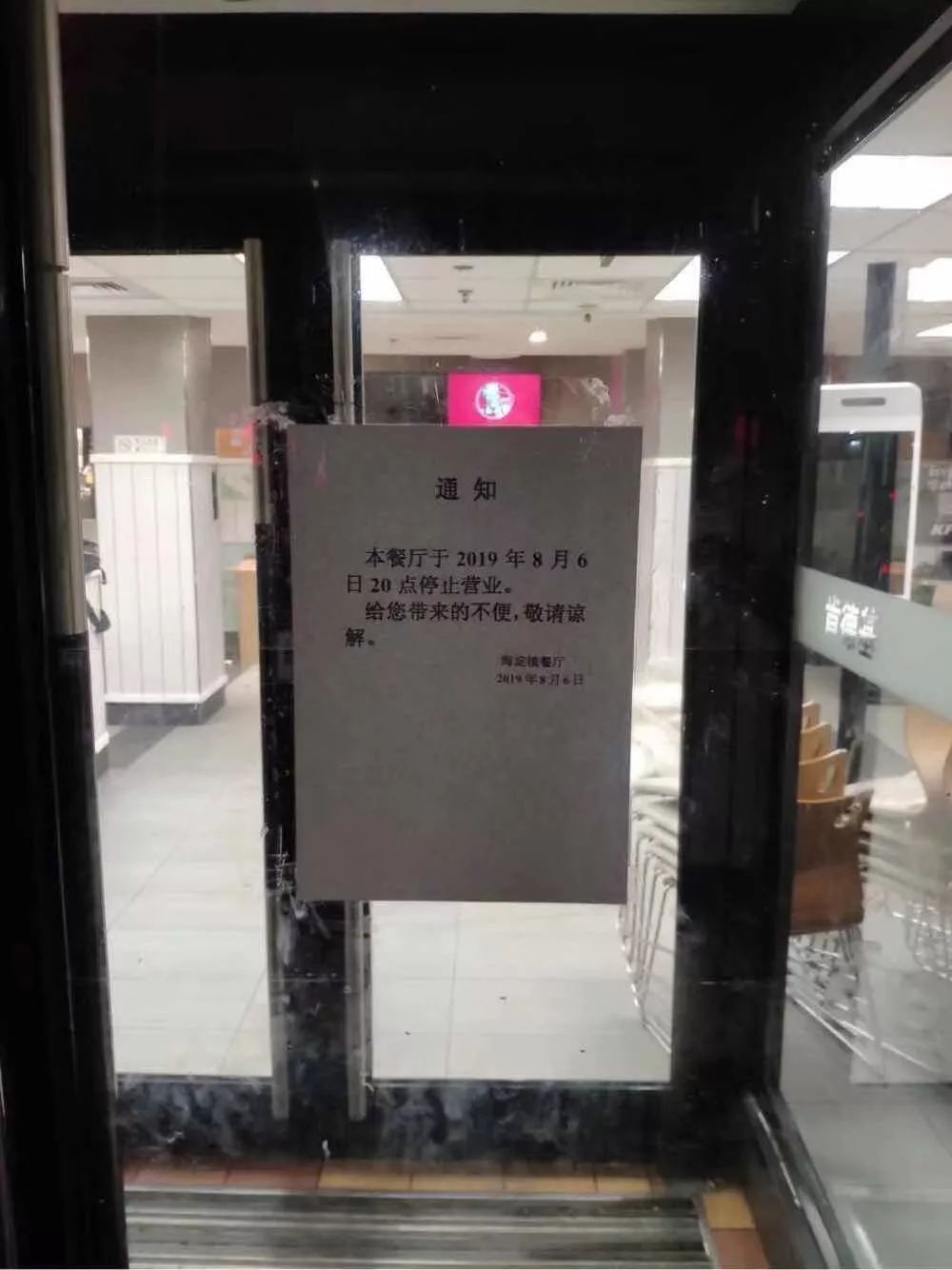 8月6日,一张肯德基海淀镇餐厅“停止营业”的告示被人转发到了树洞中。晚上八点,24小时开放的肯德基第一次在夜晚灭了灯。