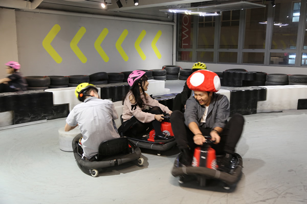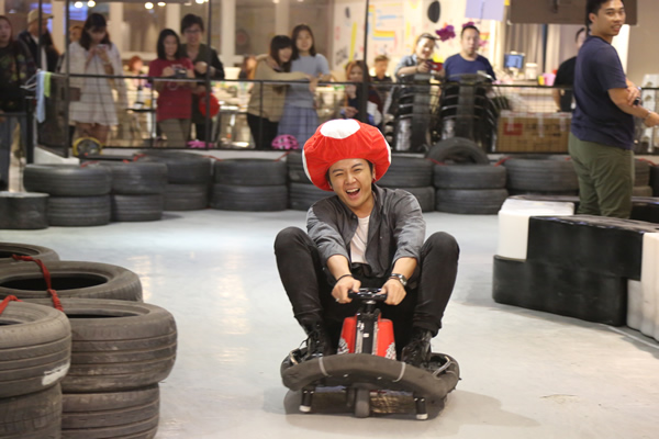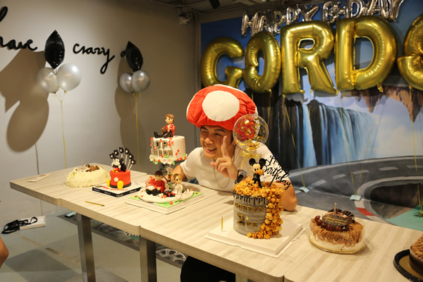 除了跟粉丝玩小游戏之外,这次生日会主题“ Super Gordon”,大家都有一个卡通人物小造型一起玩卡丁车,在小型赛车场上跟粉丝们飊车大斗一番。