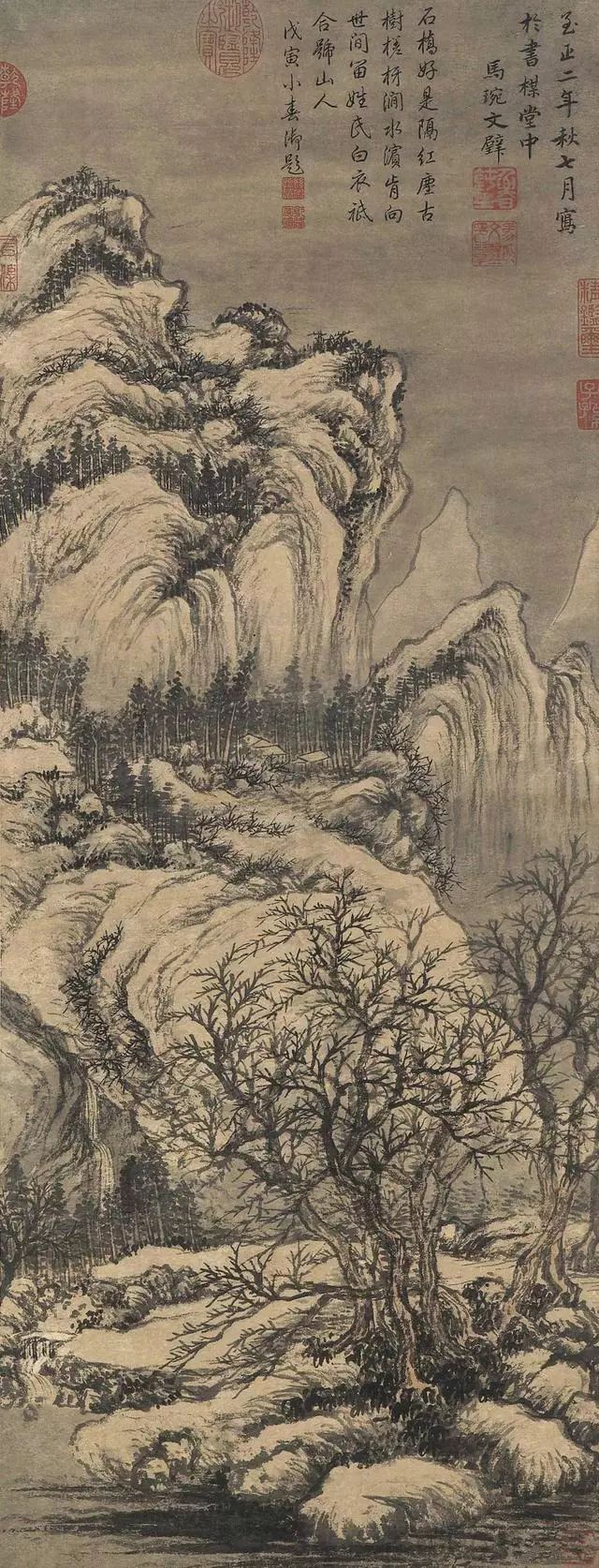马琬,生卒年不详,元末画家。宇文璧,号鲁钝生,灌园人,秦年(1370)官抚州知府。擅画山水,远法董源、巨然和米芾,近师黄公望,画法多作浅绛,笔墨清润,构图密茂。颇负时誉。约卒于明洪武年间。