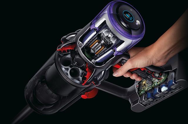 反观戴森V11的手持式设计,整机重量集中在上部,积压在手腕处,清洁时需要单手掌握整机的重量,长时间使用会造成腕关节酸痛,增加清洁负担。戴森V11采用的是长按开关,需要长按才可以保持吸力的持续,反之也会不小心造成吸尘器的启动。