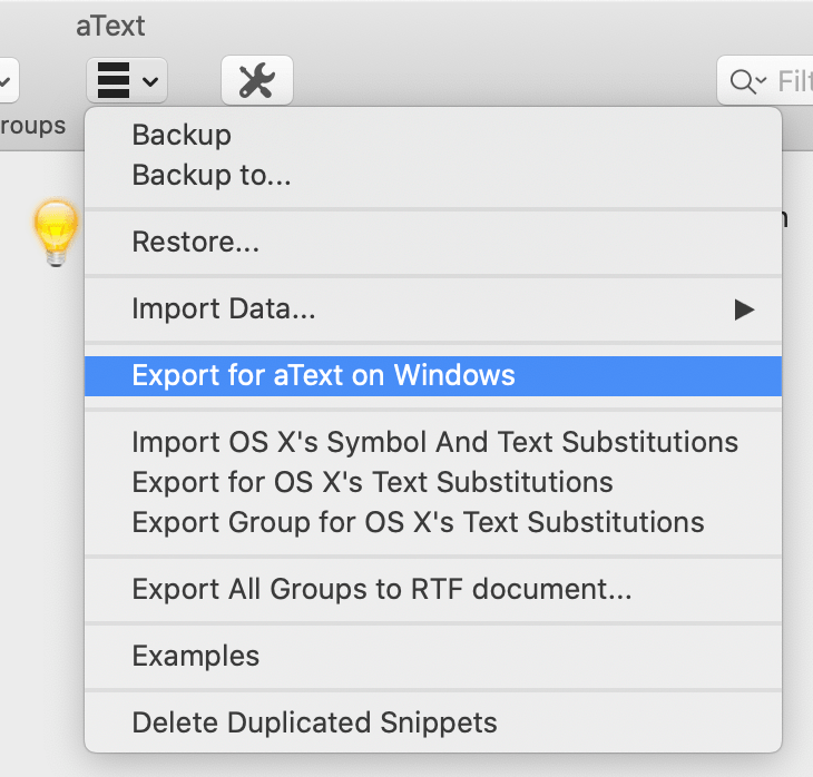 本人使用 aText for macOS 已有很多年,储备了大量 snippets,aText 也适时更新了 macOS 版使其能够导出 json 格式供 aText for Windows 使用。
