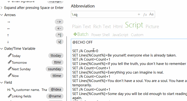 除了文本扩展,aText 还可以快速执行预设脚本,输出想要的内容。比如快速计算一个随机密码: