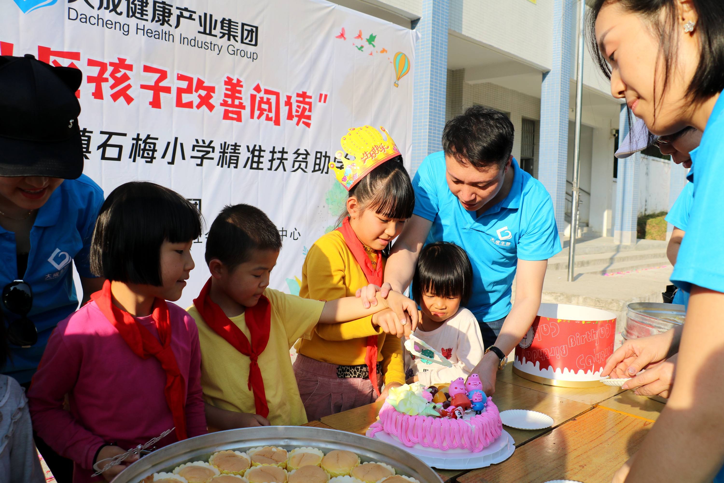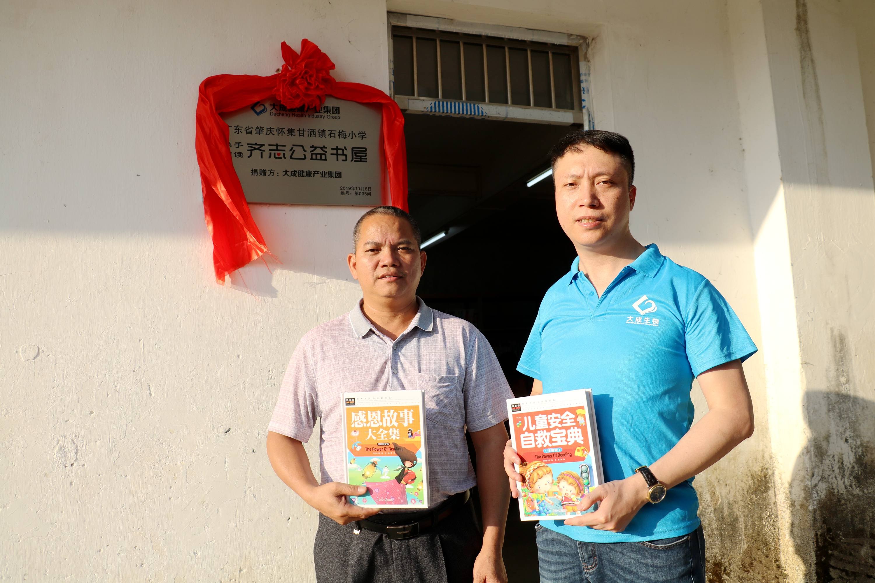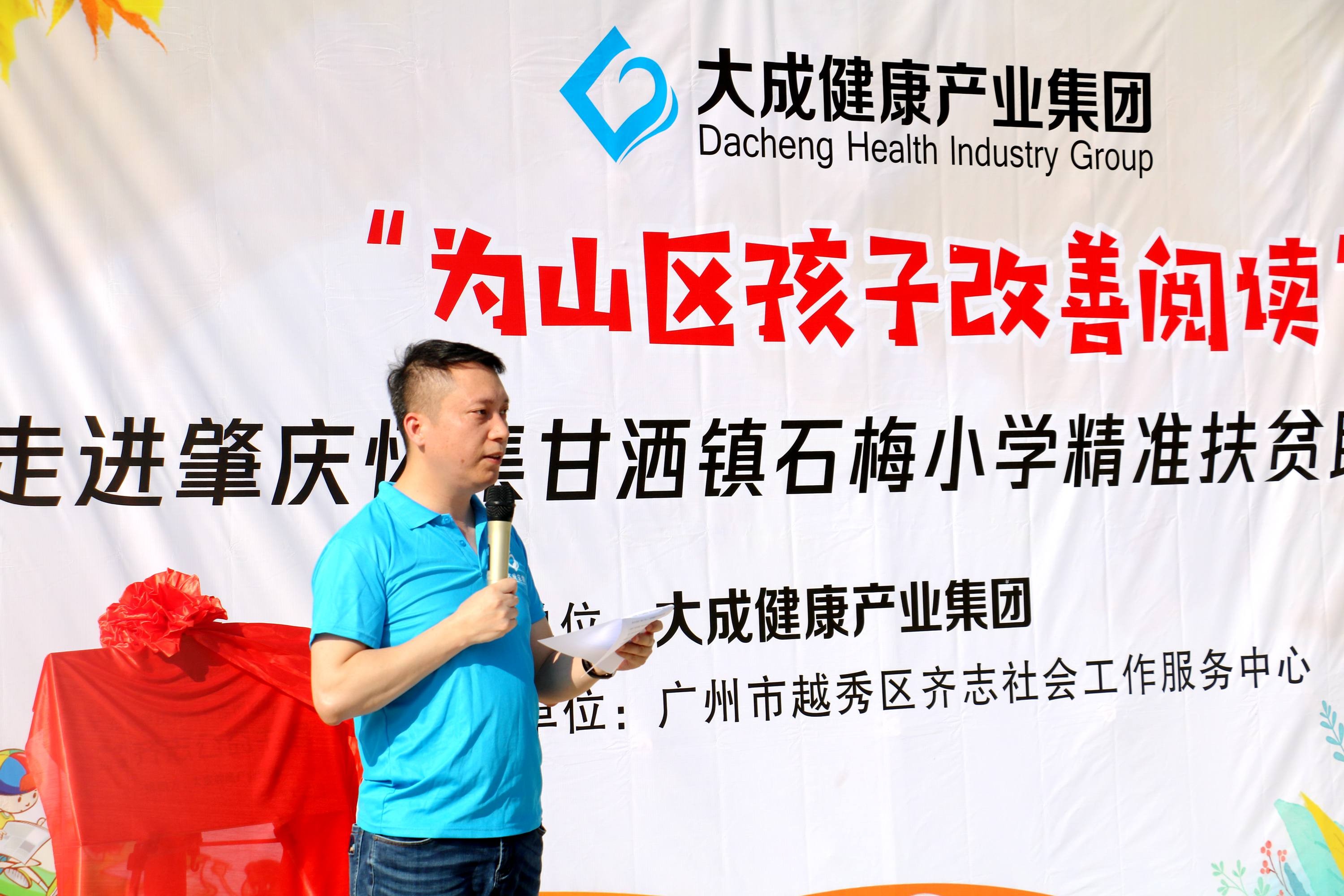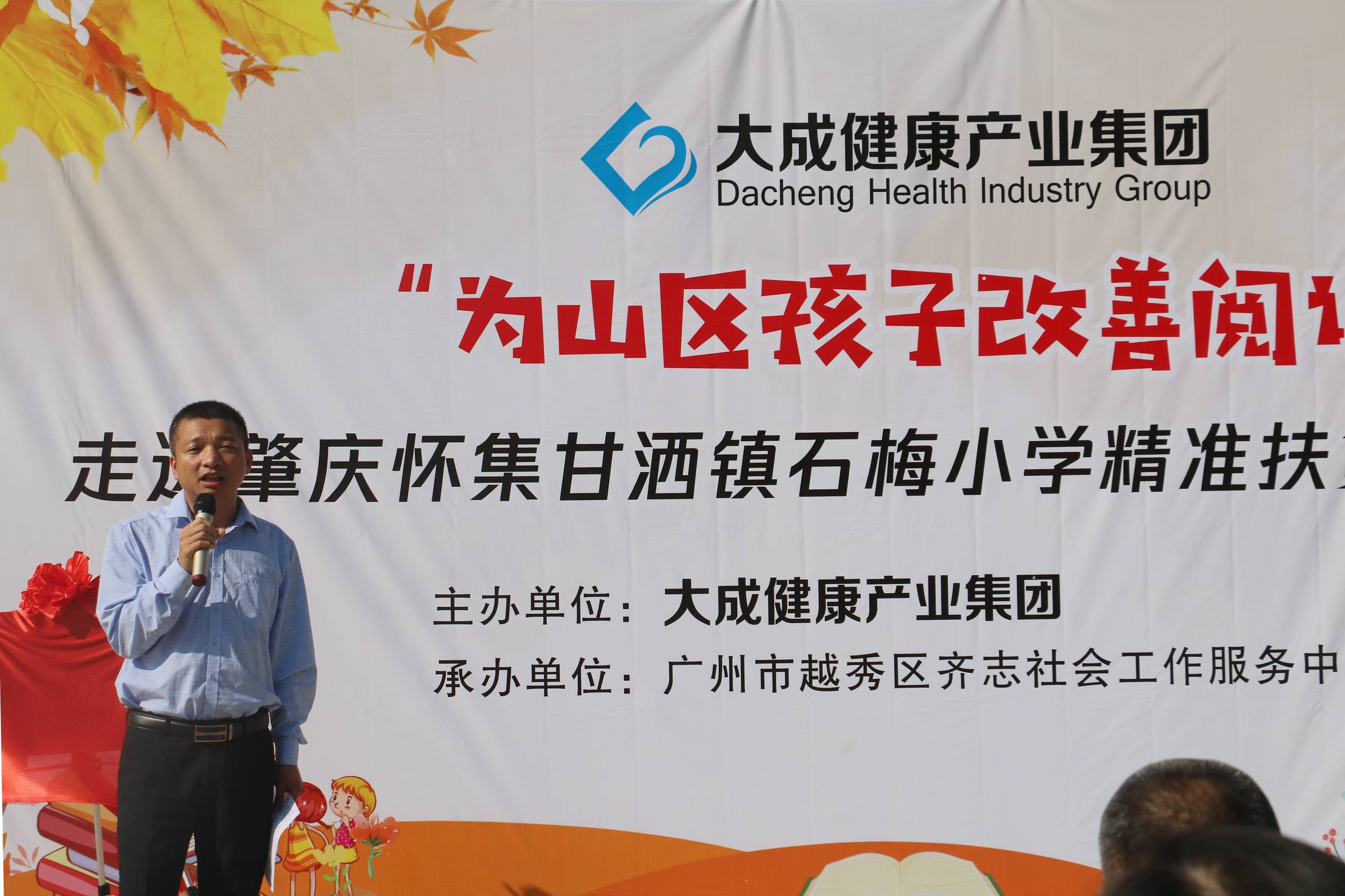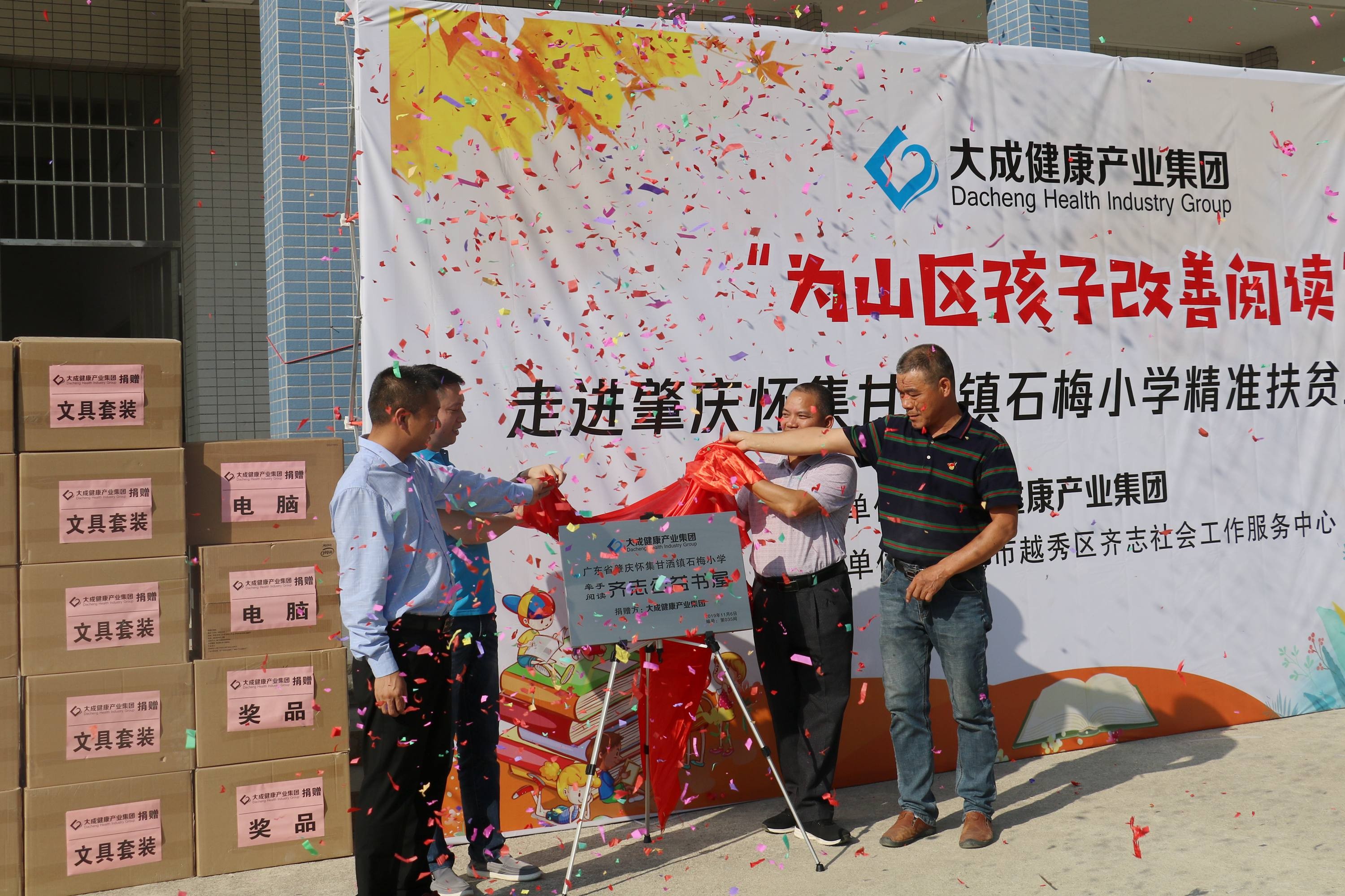 2019年11月6日,“为山区孩子改善阅读”精准扶贫助学活动在肇庆市怀集县甘洒镇石梅小学举行。活动由大成健康产业集团主办,广州市越秀区齐志社会工作服务中心承办,为石梅小学添置了一千多本图书、2套书架、阅览桌、乒乓球台、以及1套台式电脑、打印复印机、108套文具套装,为六户贫困留守儿童赠送学习机、慰问金等捐赠物资。