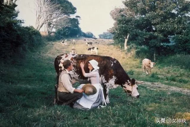 电影中苔丝姑娘头戴花环,一袭波点白裙出场,在黄昏的落日照耀下,清新得如同朝露,美丽得融化了人们的心。