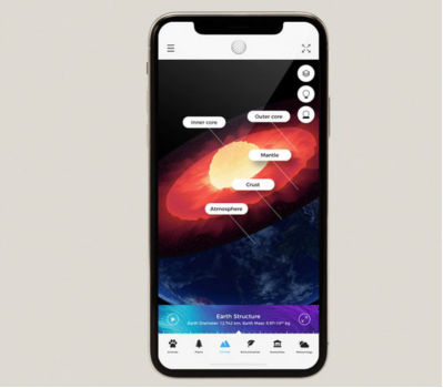 更为强大的是,地球AR模型结合增强现实AR技术,能够读取每一块大陆和海洋的数据。用手机AR进行扫描就可以显示相应的地理信息,如地标、经纬度、时区、区域、物种、植被、人口等等,并且地球AR模型还加入了时间维度,用户可以看到某一段时间这颗星球在某些方面的演变情况,甚至虚拟出地球从外到内的结构情况,让用户更加真实的与“地球”接触。