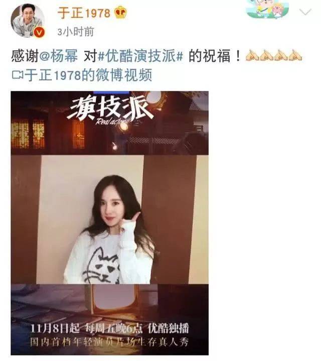 前期为了宣传他这个综艺,把能蹭的热度都蹭了,每次发微博必带《演技派》话题,还请来杨幂、赵丽颖、冯绍峰录vcr宣传。