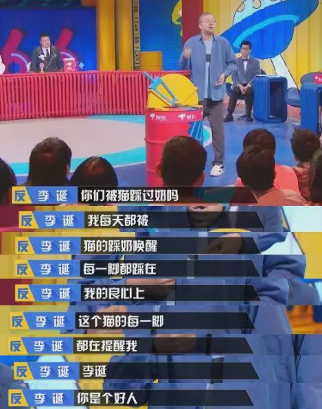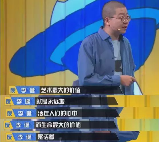 但就是这种无厘头的搞笑式辩论,瞬间让整个场子变成了李诞主场,黄执中深刻的沉思氛围,就这么四两拨千斤地被李诞瓦解了。