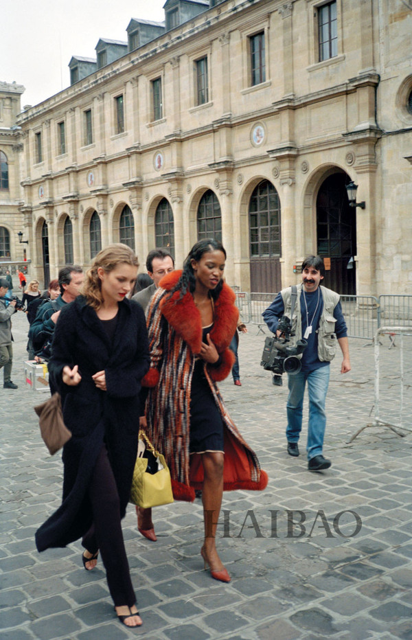 两人形影不离,好多秀都是同场走的,所以一起赶秀转场的路上,少不了就有摄影师来跟拍。多亏了他们,我们现在还能见证下两位当年秀场外街拍的风采。