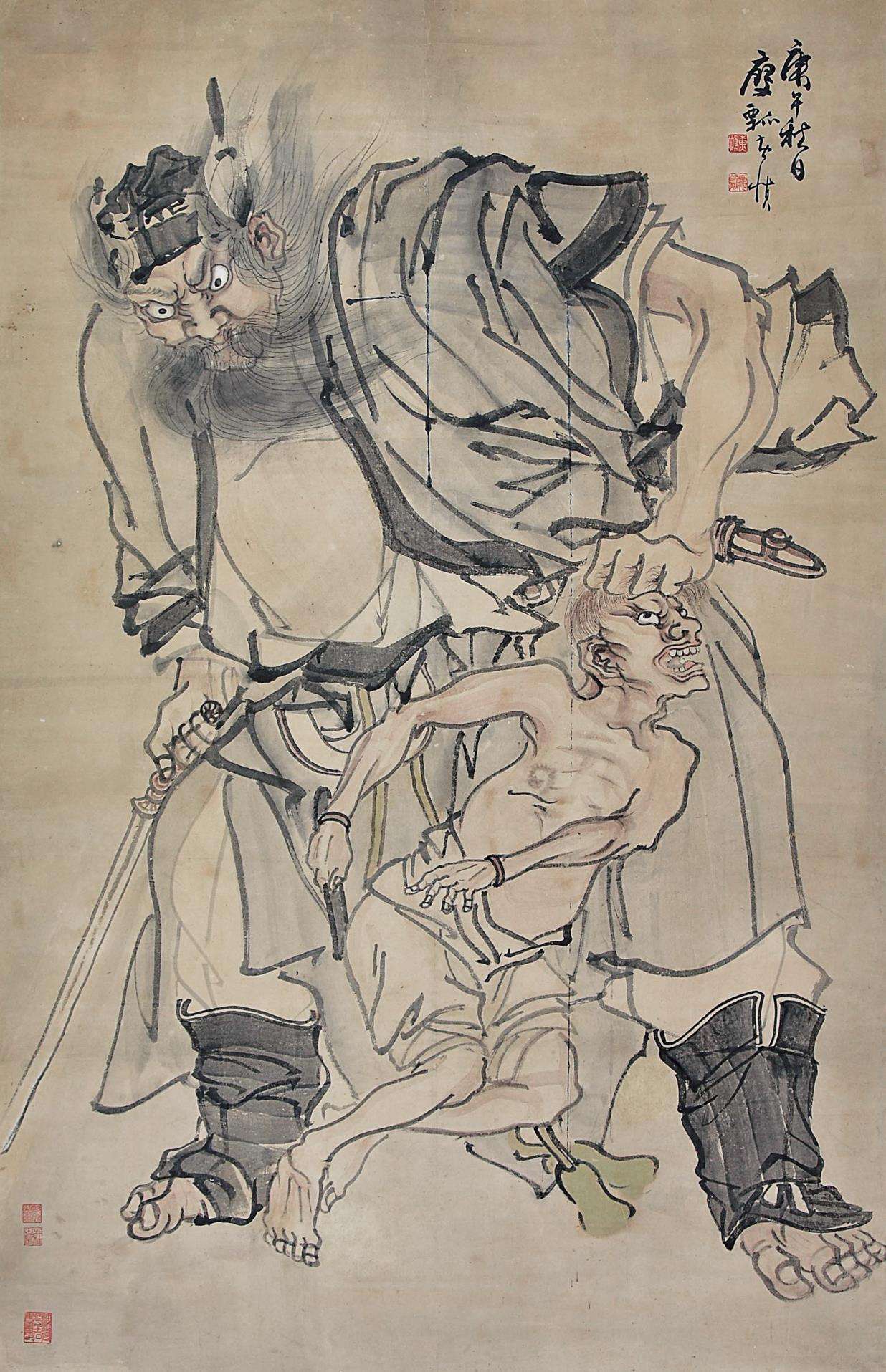 道教见皇帝如此青睐钟馗,赶紧把他纳入神谱,封他为“驱魔大神”,让他出入阴间和阳间,斩妖驱鬼。为了让他安于职守,还为他找了一位同时代的搭档、著名的唐朝宰相魏征。两人一武一文,像两个稻草人那样守望家园,伴随中国人度过漫长、黑暗和惊心动魄的岁月。
