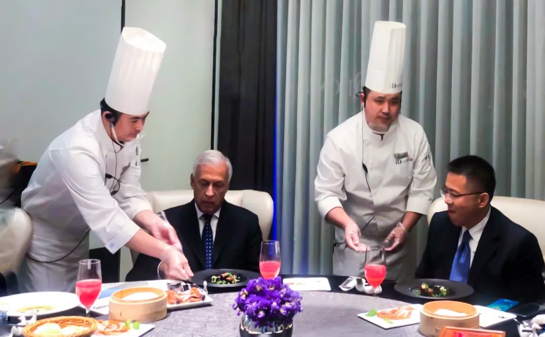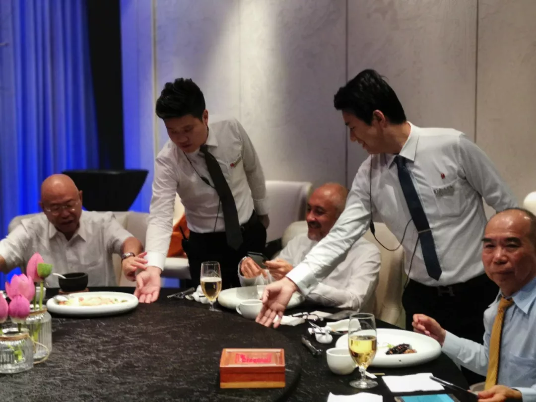 6月23日晚,大董阜成路店迎来了马达加斯加外长奈纳先生和他的朋友们,一行四人,欢快的聚会就此开始!