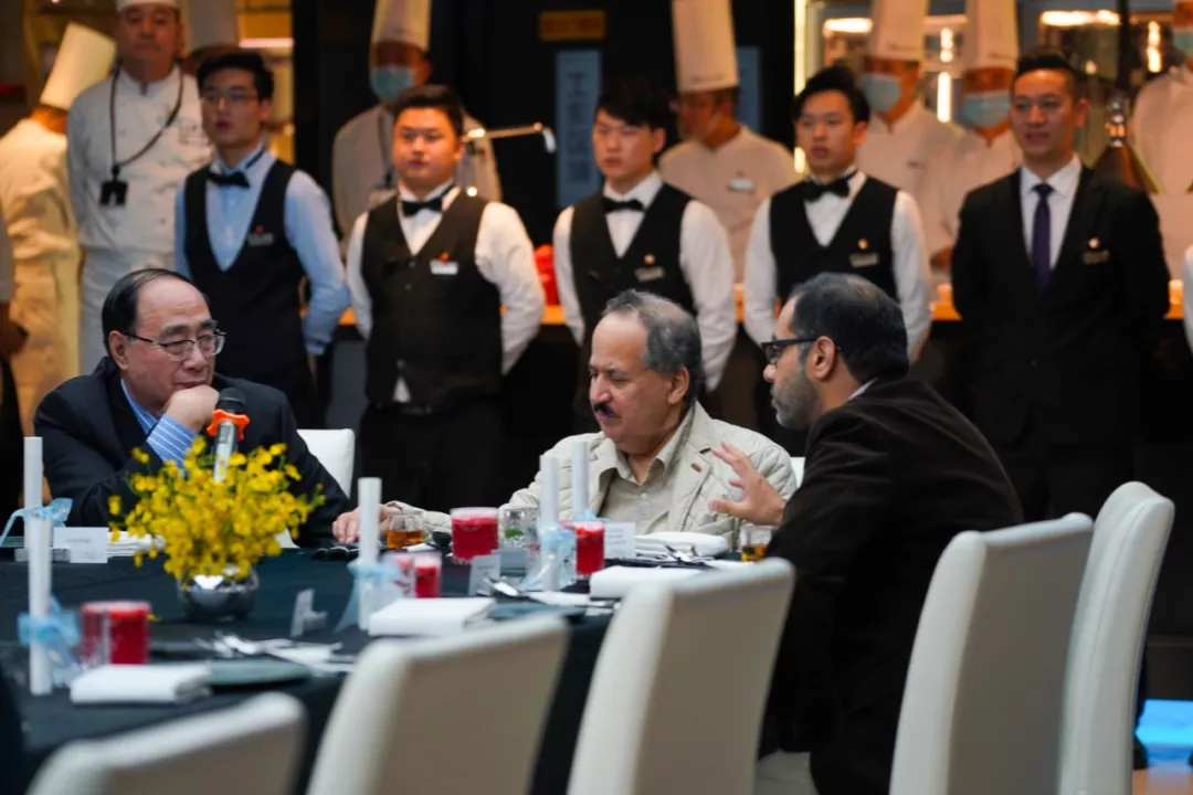 应世界食学论坛组委会邀请,2019年11月11日沙特阿拉伯亲王一行到访北京,中国政府欧洲事物特别代表、世界食学论坛主席、前联合国副秘书长吴红波先生在大董集团总部亲切会见沙特阿拉伯亲王(H.H. Prince MATAB BIN THENAYAN BIN MOHAMED AL SAUD)和王子(H.H. Prince Abdulaziz Bin Metab Alsaud ),双方就2020利雅得G20峰会世界食学论坛的举办进行了友好的协商,双方一致认为“食事问题不能有效解决,可持续发展(SDGs)就不能实现”。世界食学论坛创始人刘广伟先生,对日前到访利雅得亲王的热情接待表示感谢,就2020利雅得G20峰会世界食学论坛的筹备工作与亲王进行了进一步磋商。亲王表示,沙特阿拉伯是连接亚欧非三大洲的枢纽,沙特阿拉伯王国的国王与王储对联合国的SDGs非常重视,并推出沙特阿拉伯2030愿景规划。