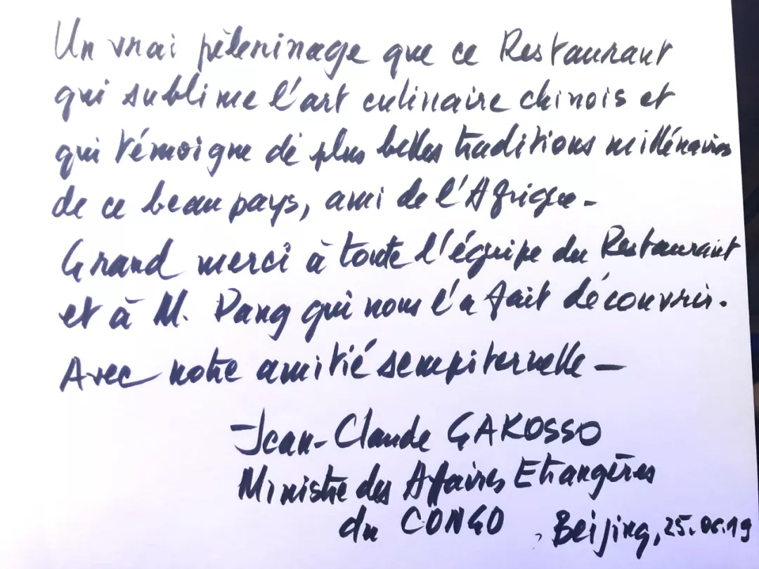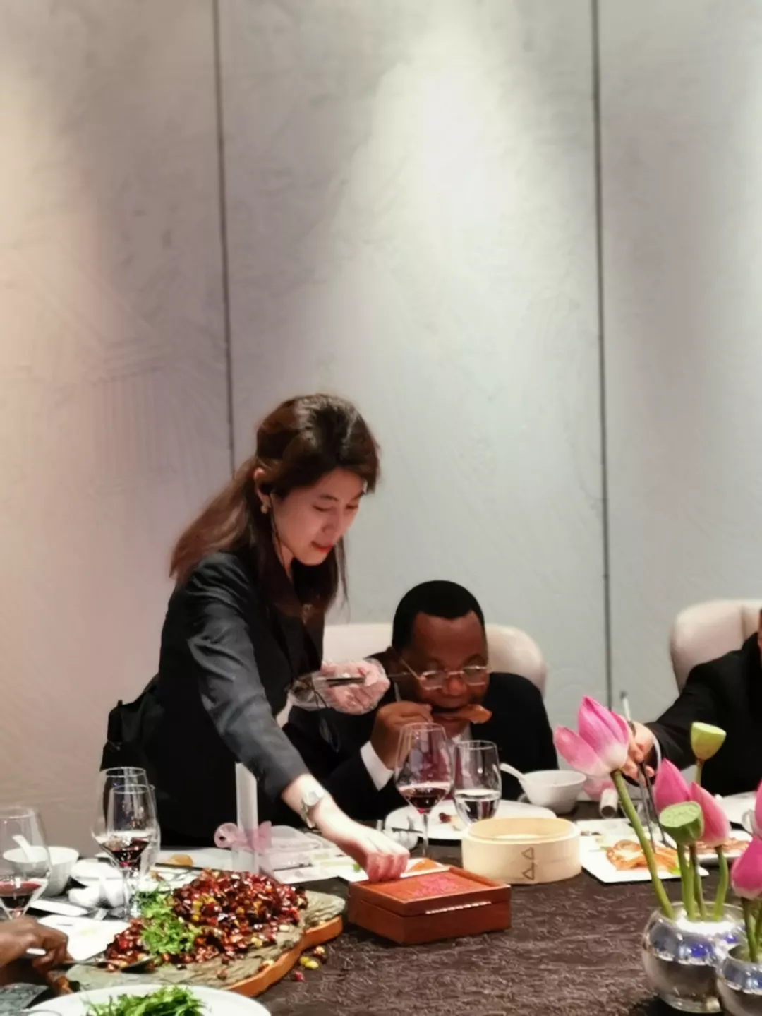 “在大董用餐体验就像是朝圣的感觉,大董餐厅展现了中国的饮食文化,显示了中国几千年的文化,也是中国对非洲的友谊,感谢团队的服务,非常开心。”