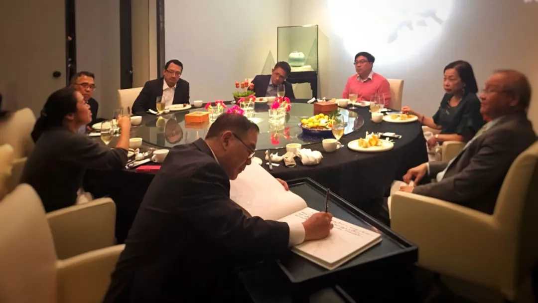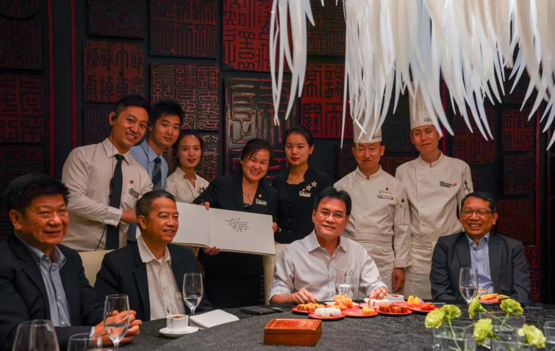 在这京城温度最低的日子里,大董南新仓店再次热情接待了远方的贵客,2018年12月11日晚,泰国立法议会主席蓬佩先生一行到大董用餐。这场晚宴,有温度!