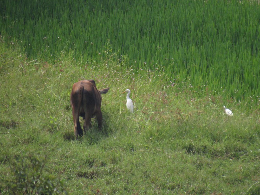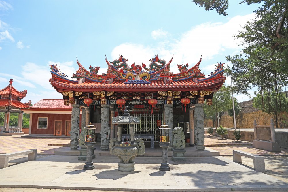 站在高金庙门口, 放眼望去一片都是绿油油稻田,引来成千上万的白鹭栖息休养。