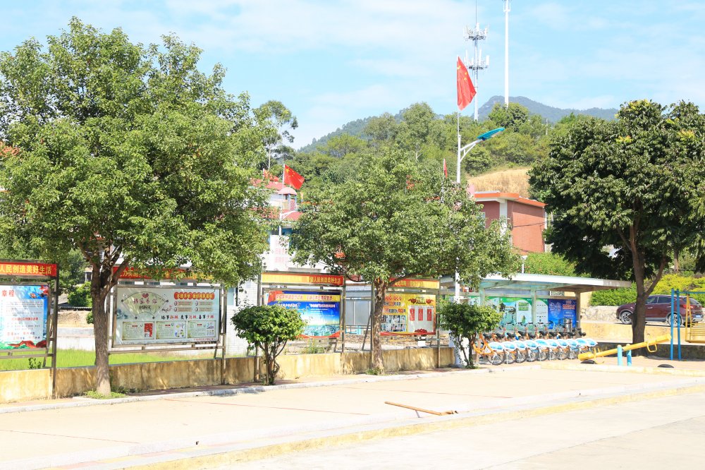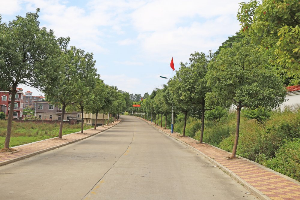 从进村的路口开始,每隔几米的路灯上就悬挂着鲜艳的五星红旗,还有一排排整齐的楼房,两旁的树木随风摇曳,好像在欢迎你的到来。