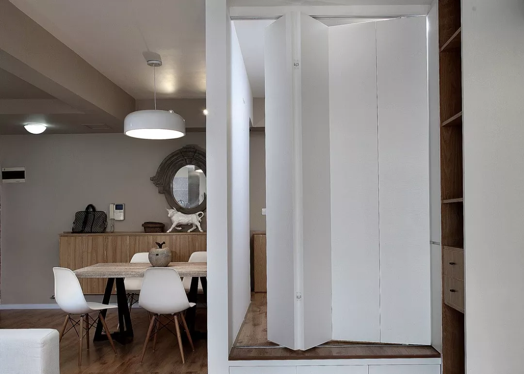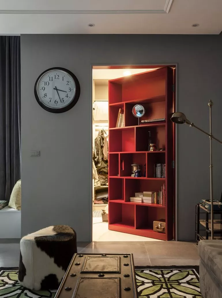 很多的隐形门都出现在一大排收纳架的后面,一来用作收纳使用,二来收纳架上的纹理刚好是隐形门隐匿自己的不错伪装砝码。将门打开,一个属于自己的私密空间得以展现。