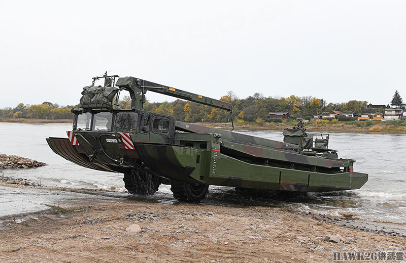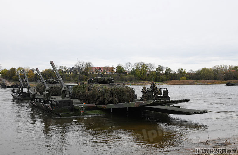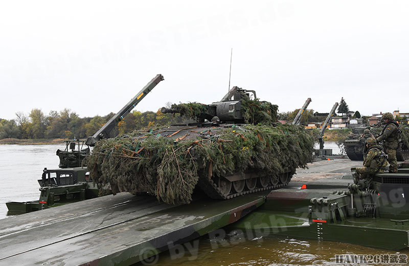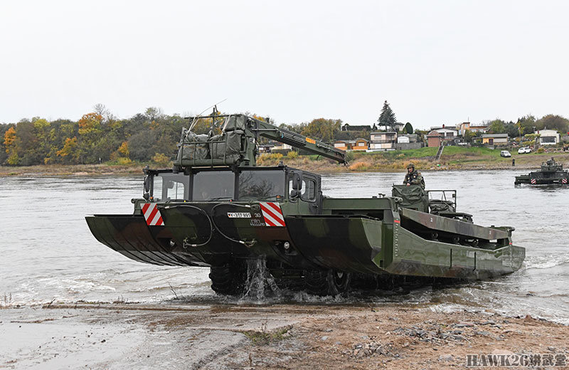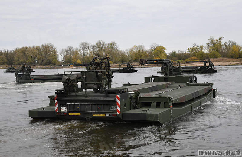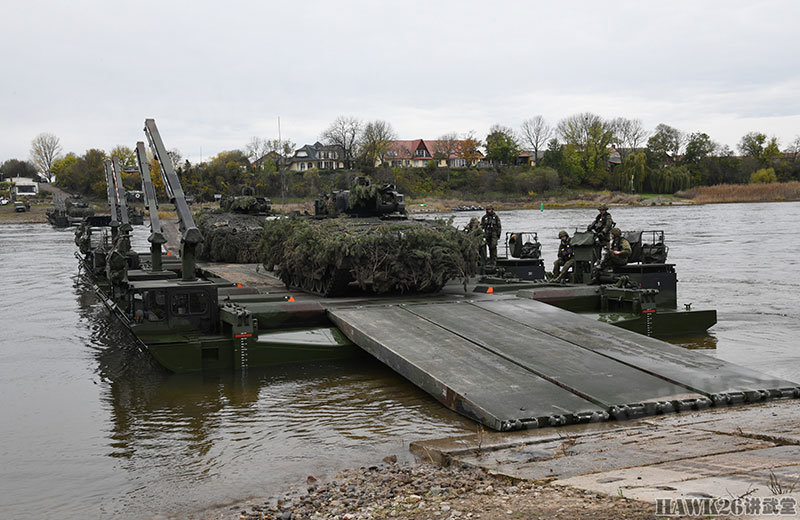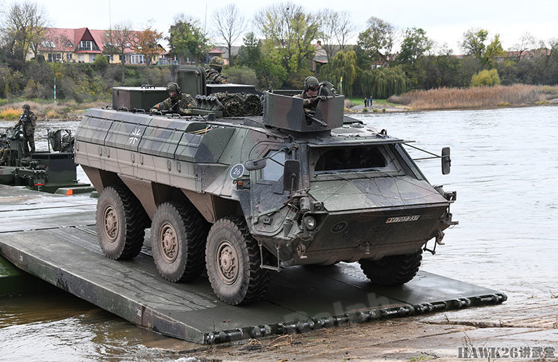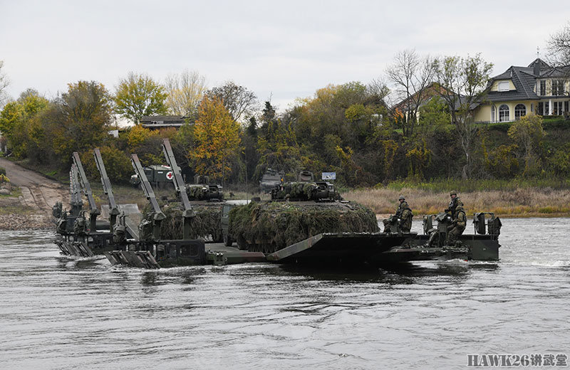 这次漕渡M3舟桥车搭载了“美洲豹”步兵战车和装甲抢救车。